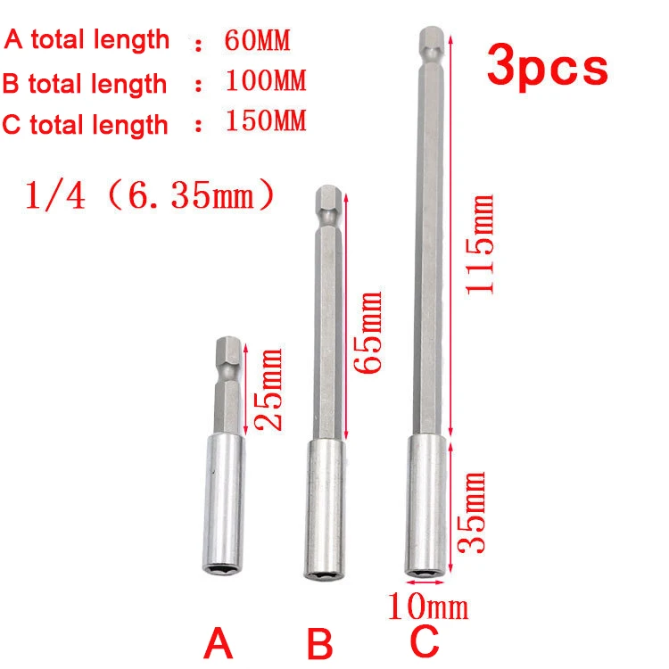 10 шт. Магнитный удлинитель для сверл 6075100150 мм 14 дюйма шестиг...