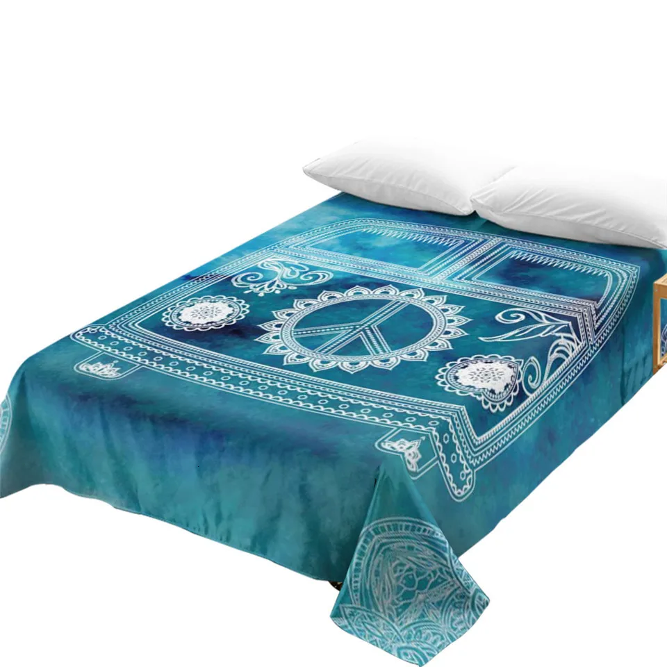 BeddingOutlet акварельные автомобильные простыни Мандала голубая плоская простыня Богемный Хиппи Винтаж Мини-фургон постельное белье мир Дизайн покрывала
