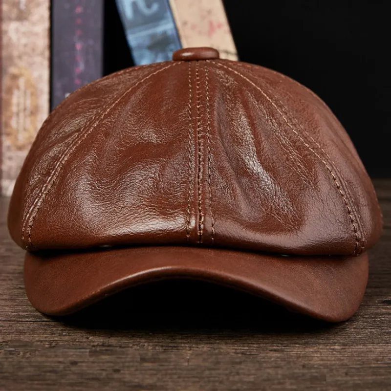 Шапка XdanqinX мужская из натуральной кожи, Элегантный Модный берет из воловьей кожи с язычком для молодых студентов, осенняя Кепка
