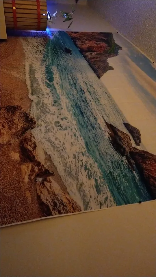 Быстрая доставка.Думала,это фотообои.Не представляю,как клеить её целиком.Это не бумага,что-то между клеенкой и тканью.