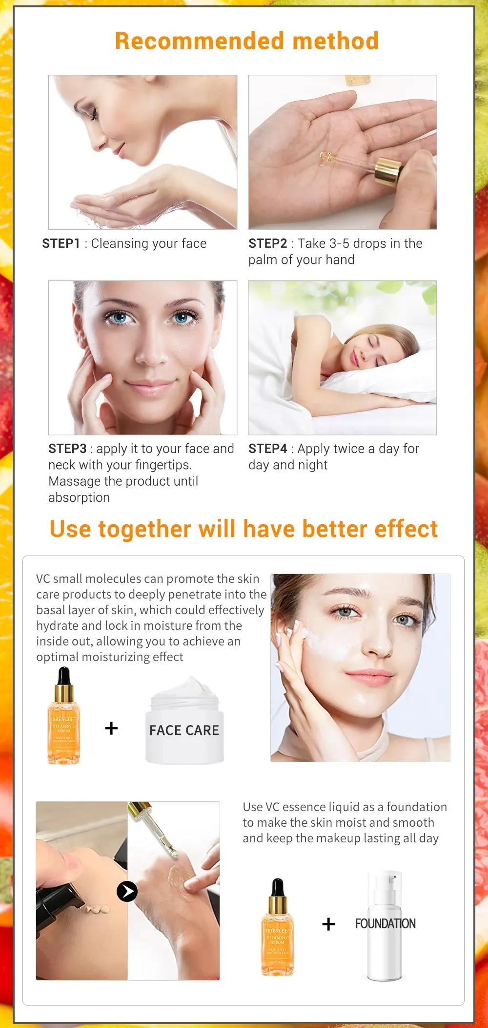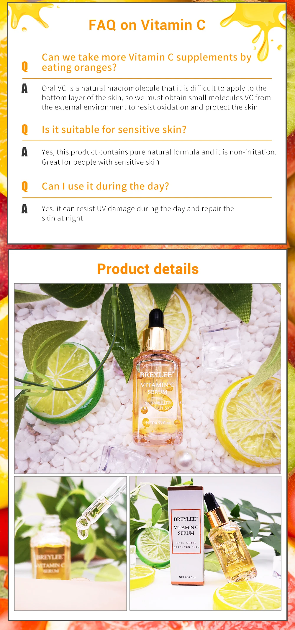 BREYLEE натуральная сыворотка с витамином C, осветляющая уход за кожей лица, устранение темных пятен, веснушек, Антивозрастная отбеливающая сыворотка, уход за кожей 15 мл
