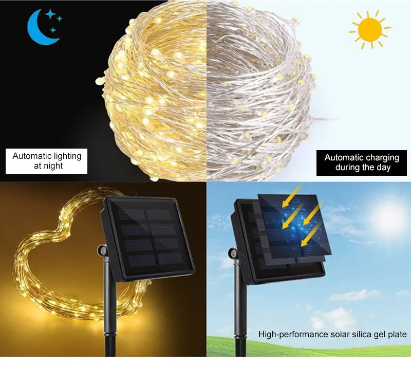 Многоцветная Волшебная лампа 10 м на солнечной батарее, водонепроницаемая гирлянсветильник с медным проводом, декоративная лампа для рождества, свадьбы, вечеринки
