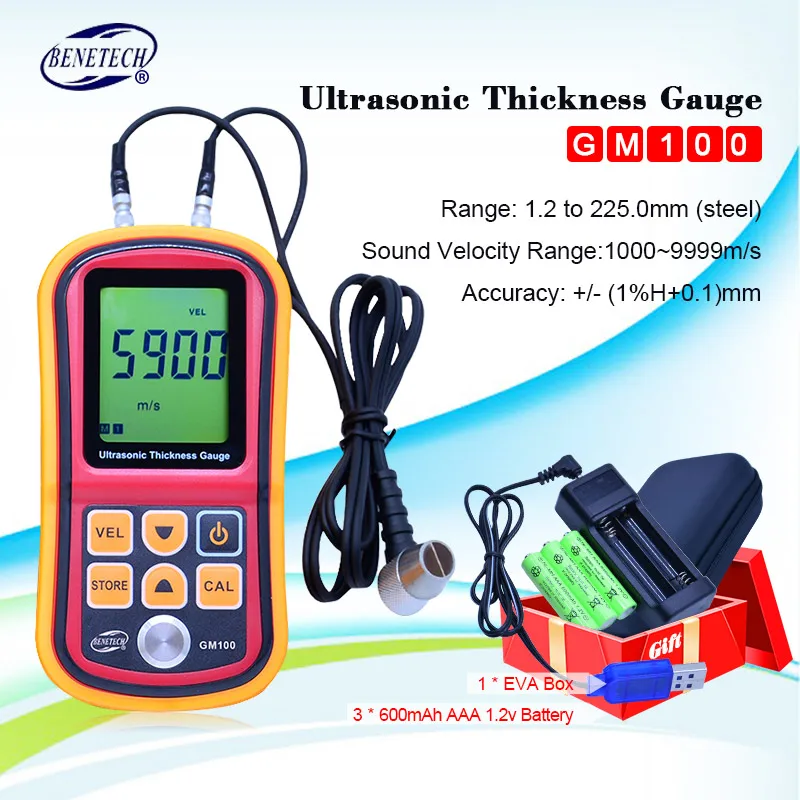 Ультразвуковой измеритель толщины gm100, измерительные приборы 1,2-200 мм, измеритель скорости голосового звука, EVA BOX + перезаряжаемая литиевая батарея
