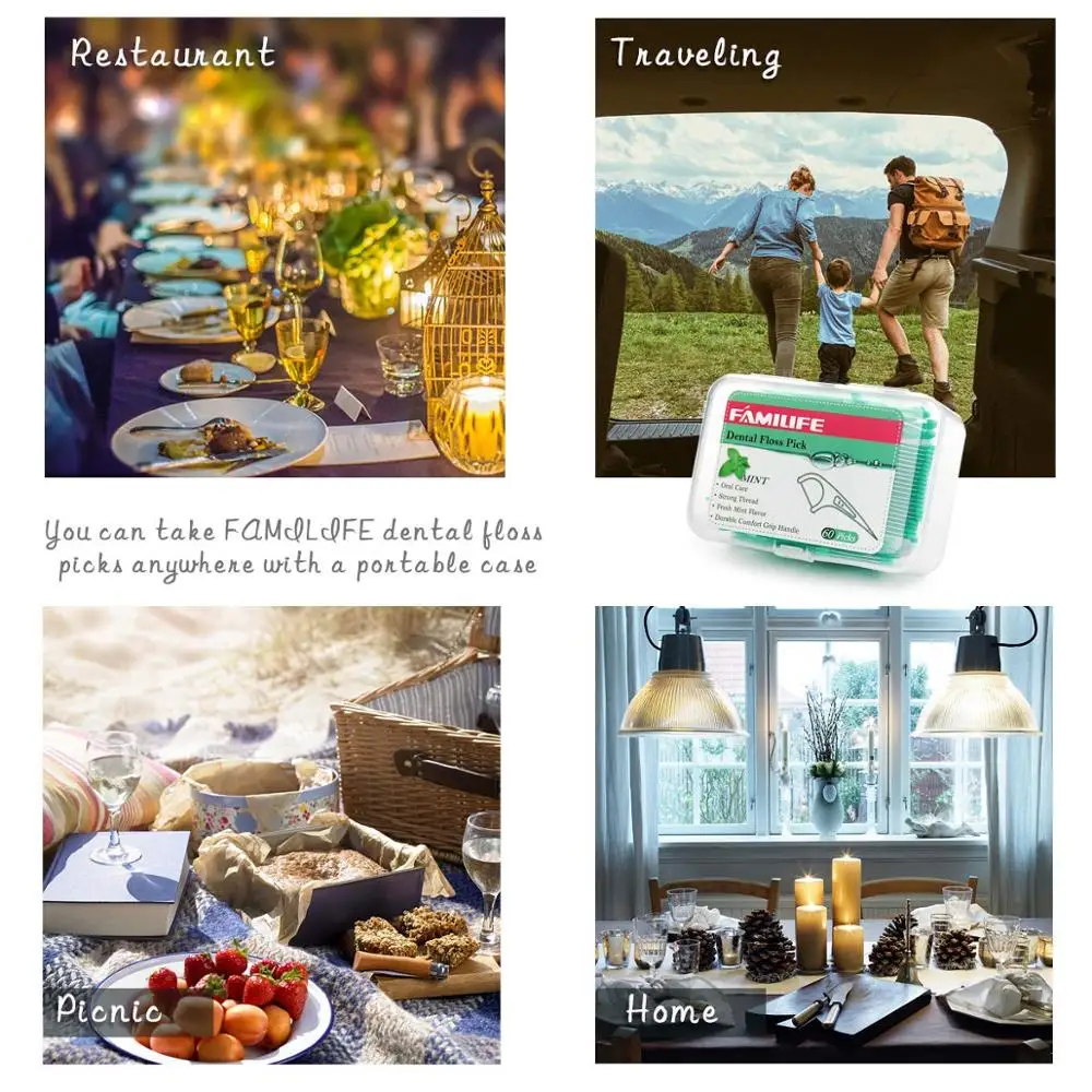 FAMILIFE зубочистка мята зубочистка с 4 удобными для путешествий чехлами 240 графов