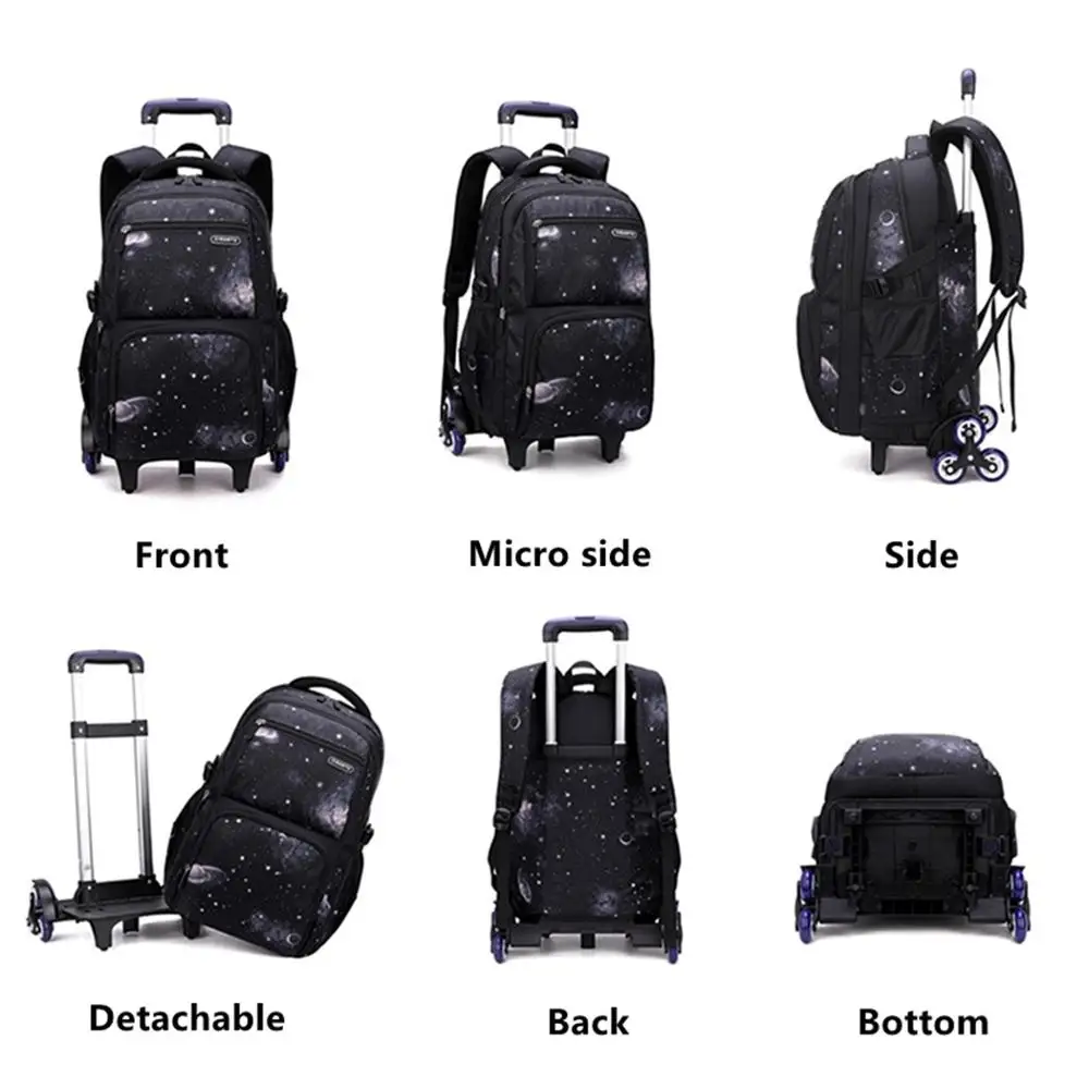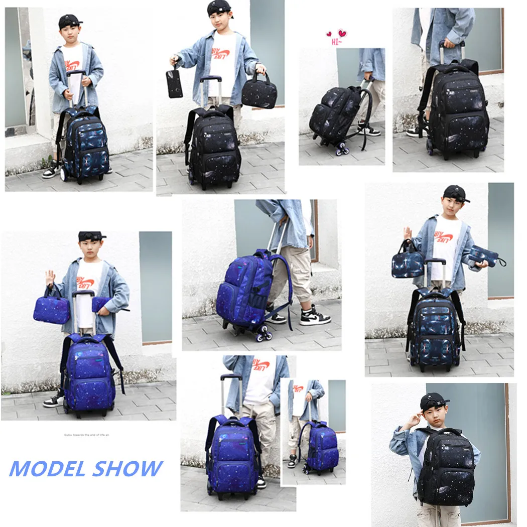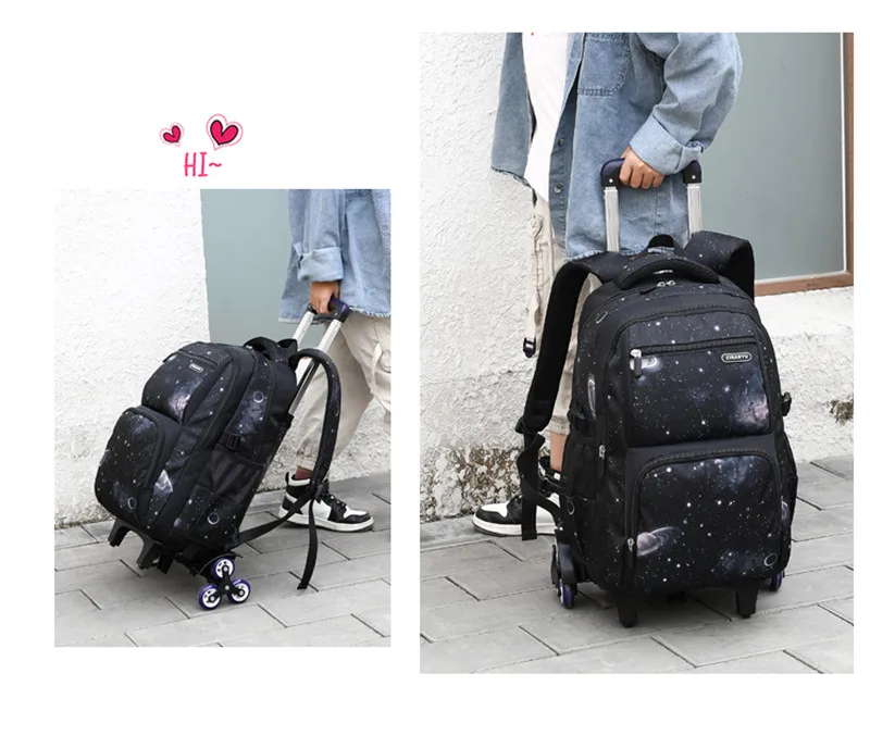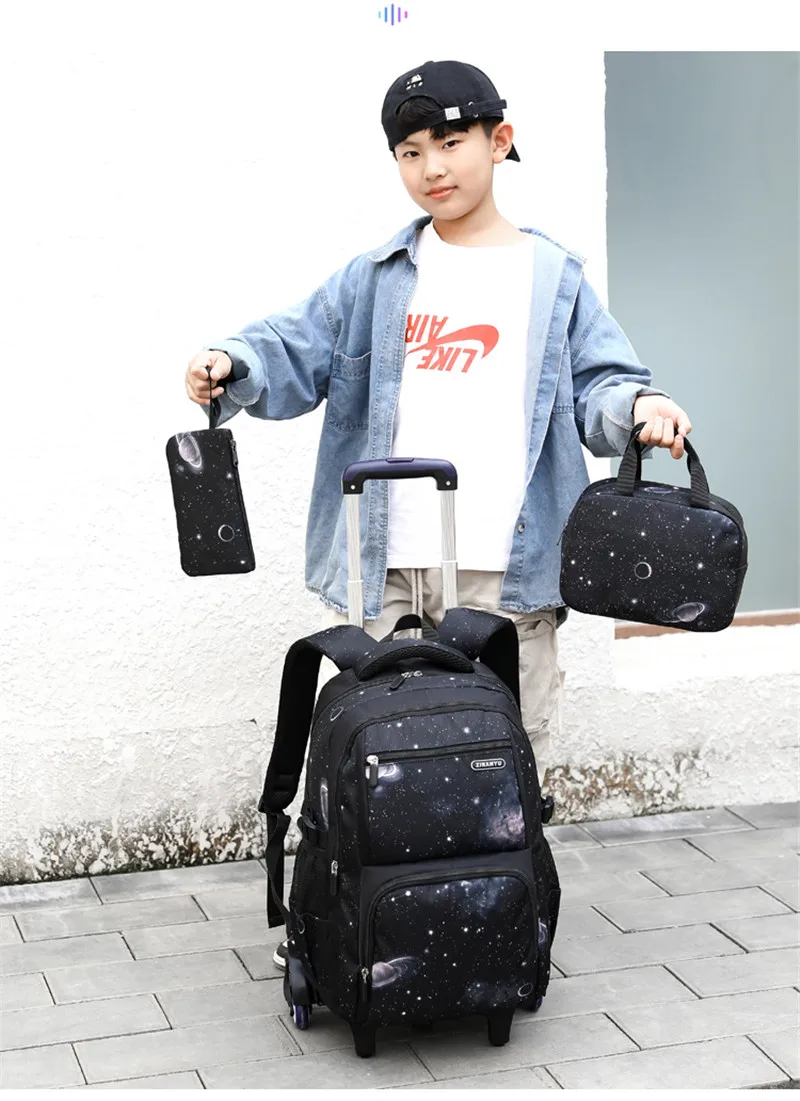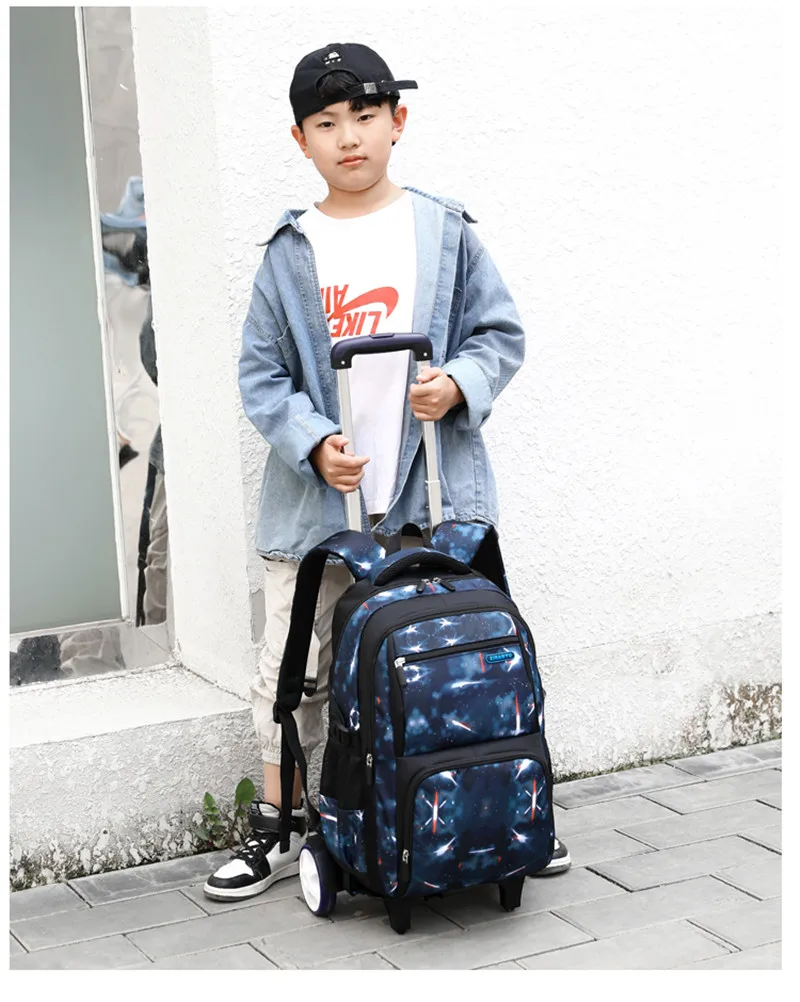 Водонепроницаемый рюкзак на колесиках для мальчиков и девочек, школьная сумка-тележка 3 в 1, детский съемный Дорожный чемодан на колесиках