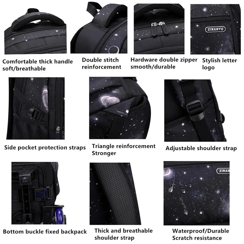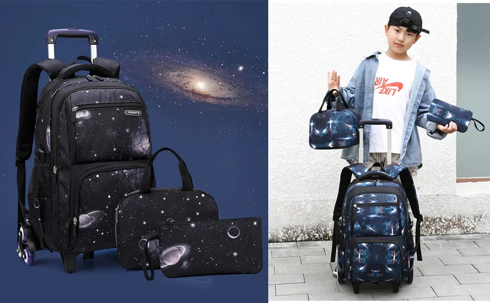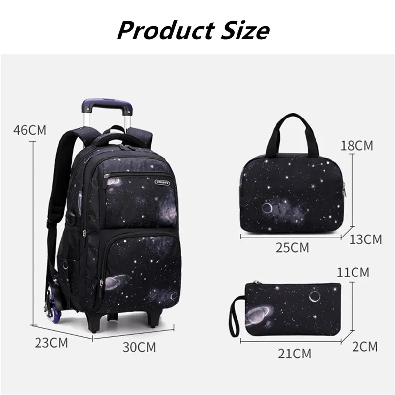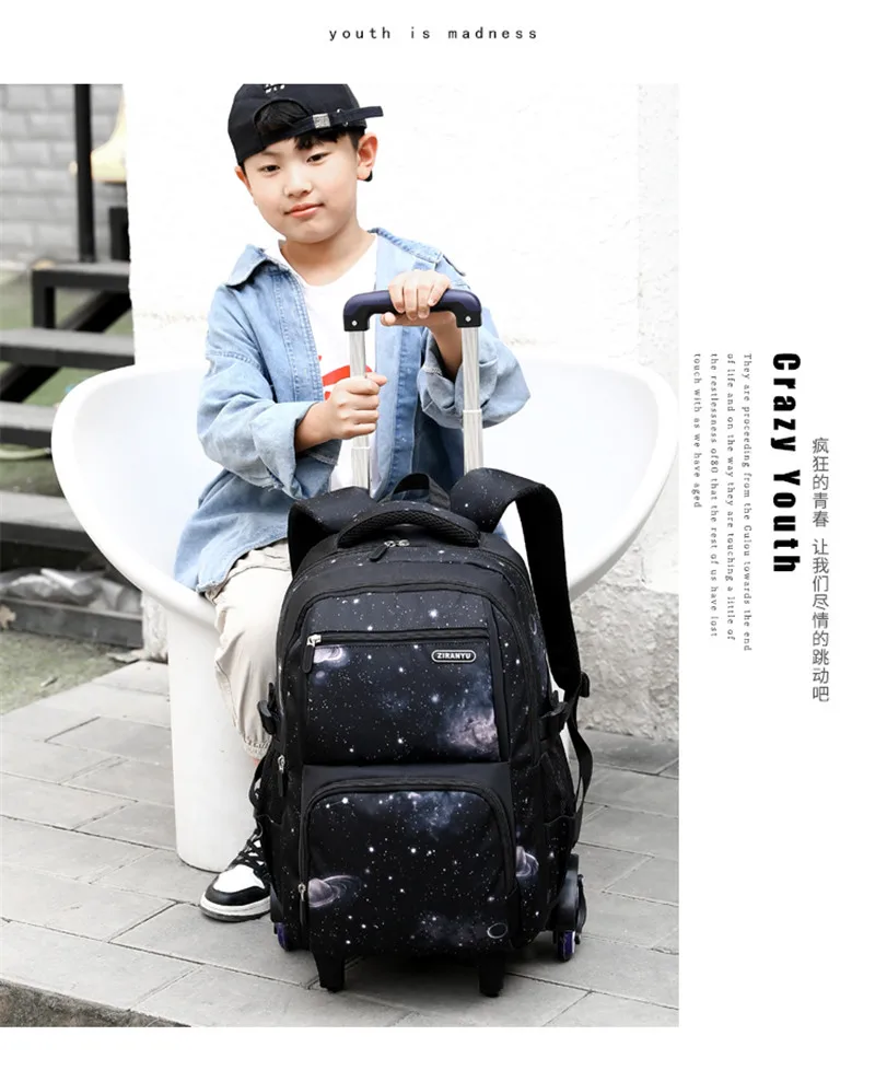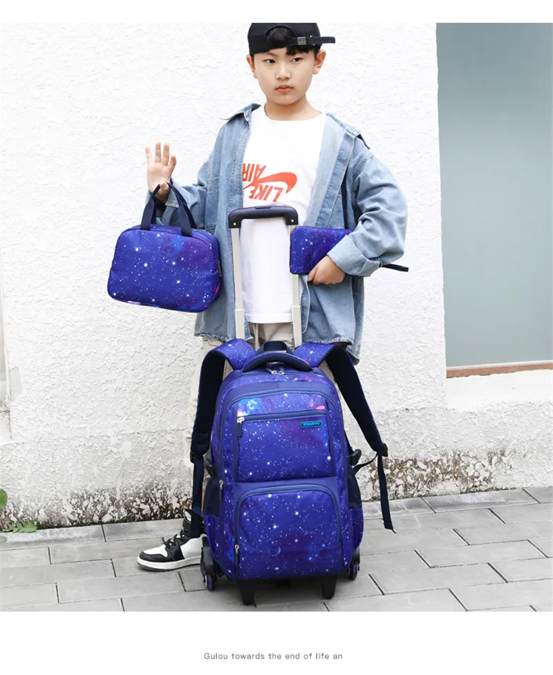 Водонепроницаемый рюкзак на колесиках для мальчиков и девочек, школьная сумка-тележка 3 в 1, детский съемный Дорожный чемодан на колесиках