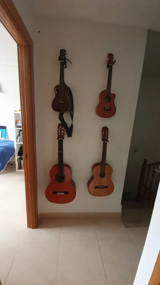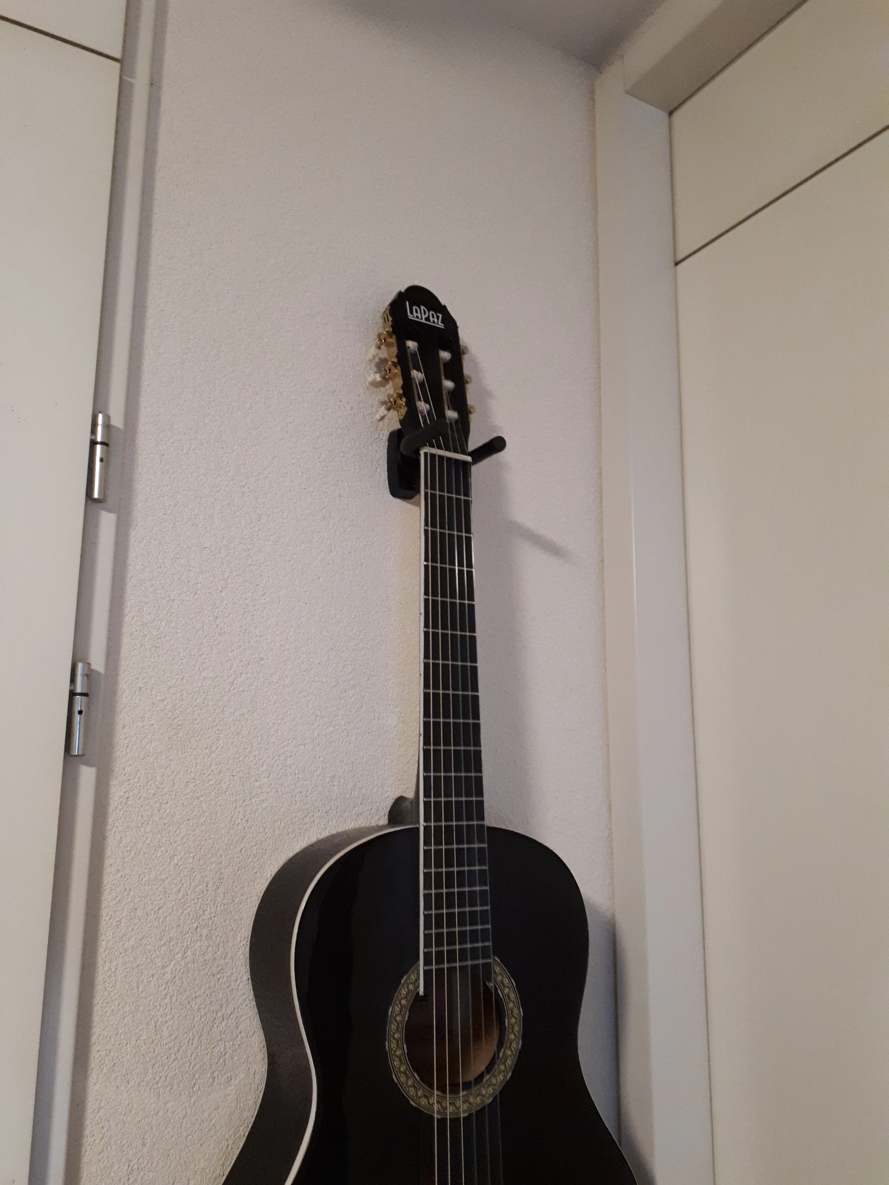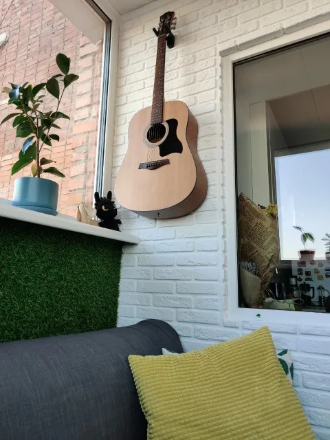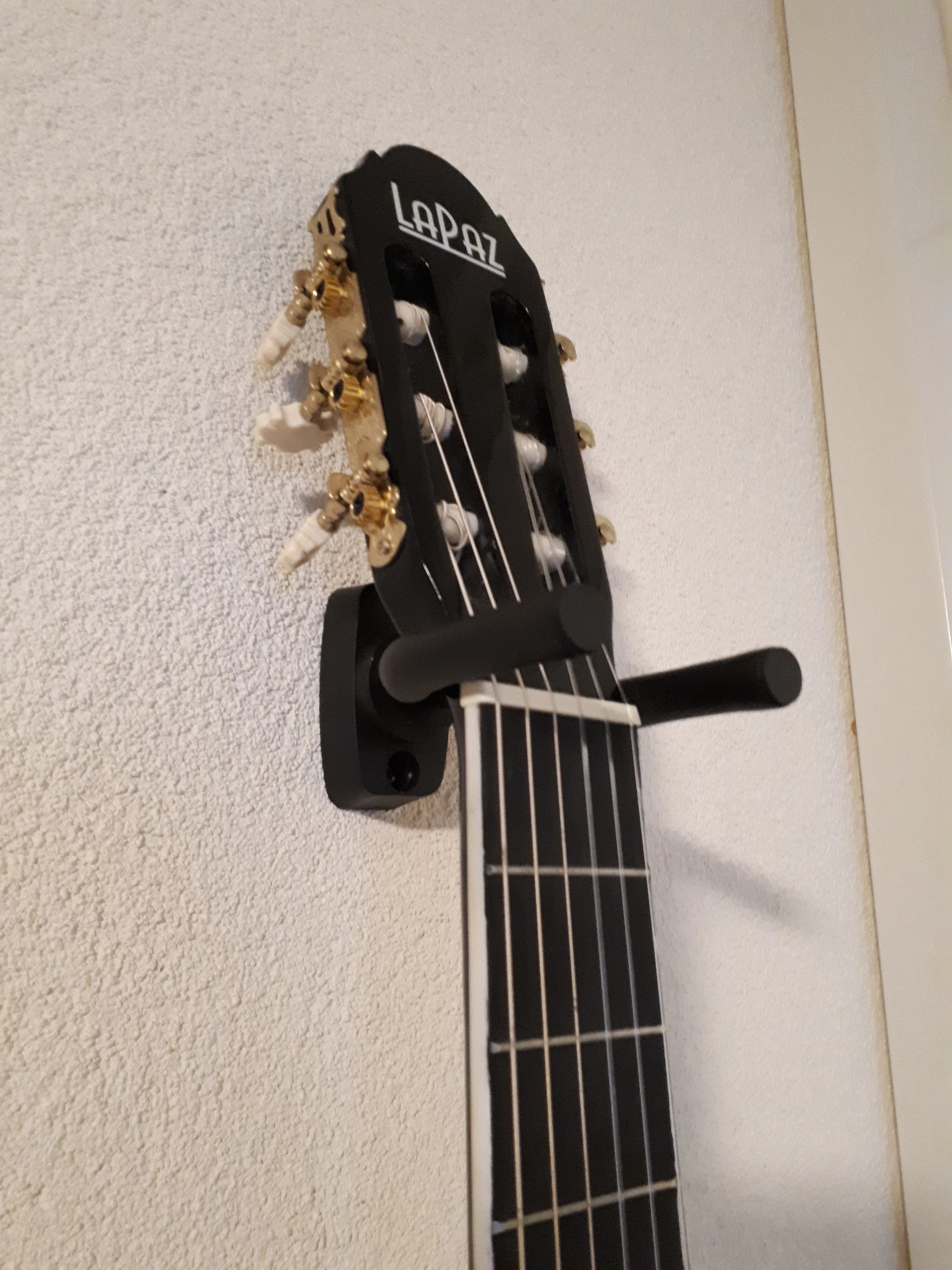 Точно так же, как на картинке, работает хорошо, немного туго для моей Испанской Гитары, но хорошо вписывается. Принесите винты и Тако для стены. Идеально подходит для этого