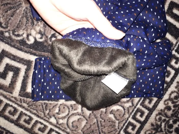 Very nice looking leggings, soft and fluffy, very warm furry lining inside. Also size fits perfectly.