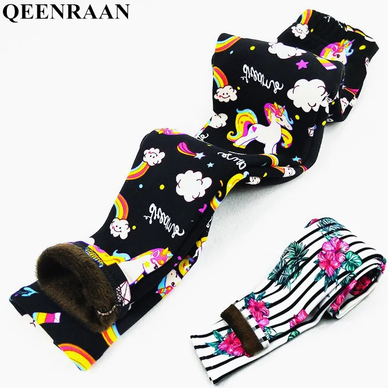 Одежда для маленьких девочек, зимние осенние плотные теплые леггинсы для девочек с рисунком, брюки, леггинсы для мальчиков и девочек, бархатные брюки