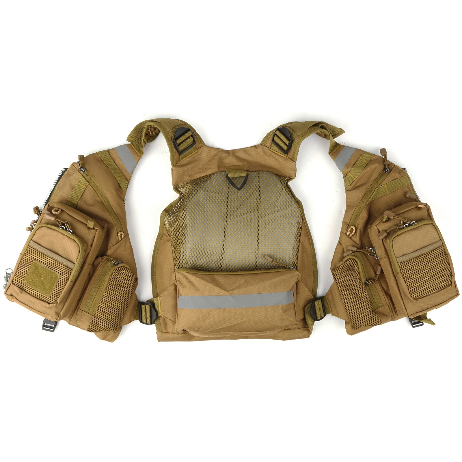 Особенности:Изготовлен из полиэстера премиум-класса ripstop для превосходного качества и долговечности.Четыре больших нагрудных кармана, четыре передних кармана на молнии, два боковых сетчатых кармана и один большой задний карман.Петли для аксессуаров и лестницы для крепления на груди позволяют создавать индивидуальные насадки.Сетка на спине обеспечивает высокую воздухопроницаемость.Открытые стороны оставляют больше места для плыва, заброса или прицеливания на воду.Регулируемые ремешки с пряжкой с несколькими перепонками идеально подходят практически для любого человека.Отражатели на спине и плече источают профессиональное чувство безопасности для спасения жизни.Отлично подходит для ловли нахлыстом, Каяка, каноэ (практически любого типа рыбалки).Характеристики:Цвет: серый/зеленый/красный/синий/Камуфляж/темно-зеленый/черный/земляной камуфляж/Земля (по желанию)Материал: полиэстер + пена EPEМаксимальный подшипник: 95 кг/209,44 фунтаПлоский размер изделия: 53*47 см/20,87 * дюймаВес: 700 г-950 г/фунта-фунта