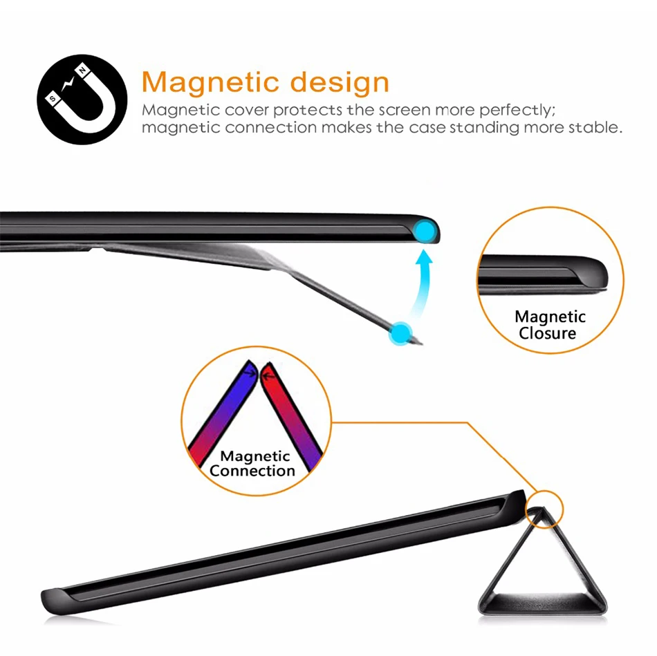 【Автоматический Режим сна/пробужденияМагнит фиксирует чехол, легко защелкивается и выключается, работает без проблем с функцией автоматического сна/пробуждения планшета, чтобы разбудить ваш планшет в любое время, защищает и экономит время работы от аккумулятора.