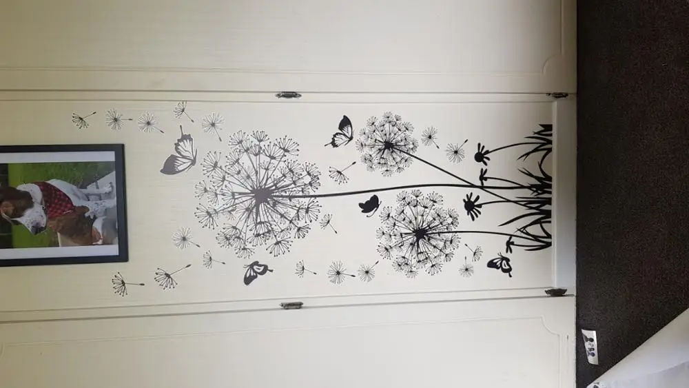 1 шт. бабочка, летающая в одуванчике, для спальни, гостиной, декоративные наклейки, наклейки на стену из ПВХ, для дома, декоративный фон