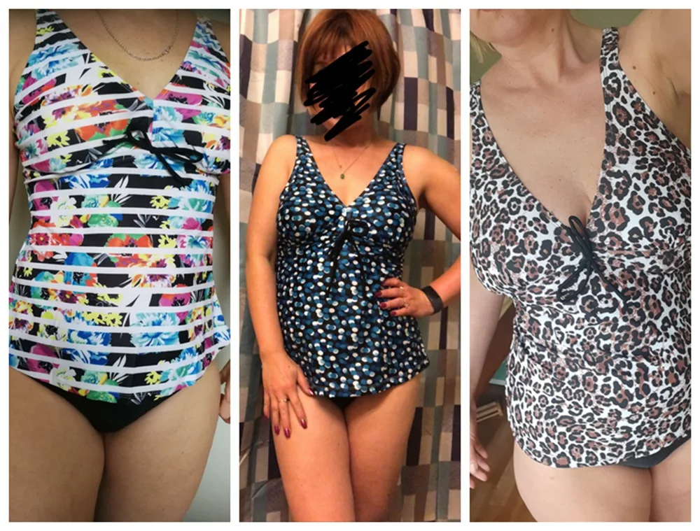 Я брала L на ОГ 94, ОПГ 80, ОТ 75, ОБ 100. На рост 160 спереди чуть длинноват. грудь после кормления 2х детей не прям хорошо смотрится. В лифе круглые вставки, в воде съезжают.