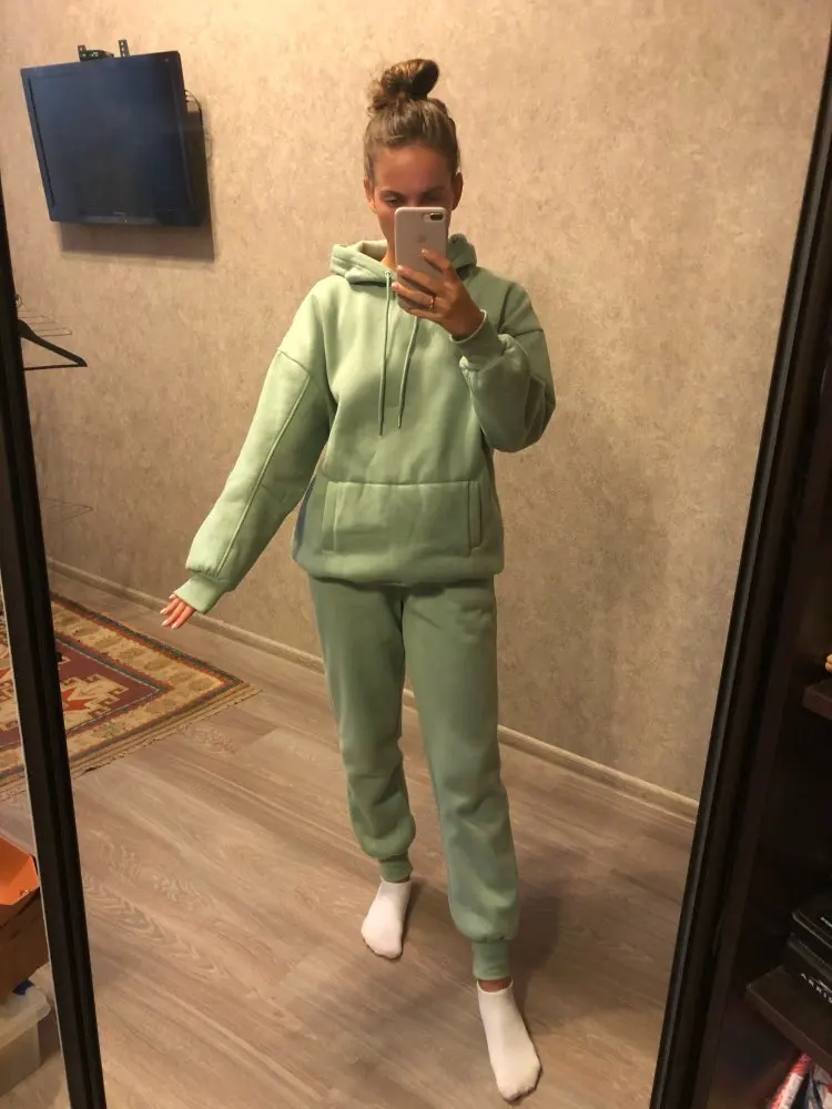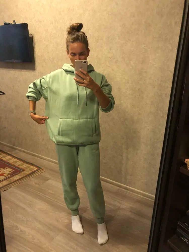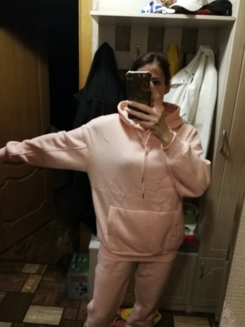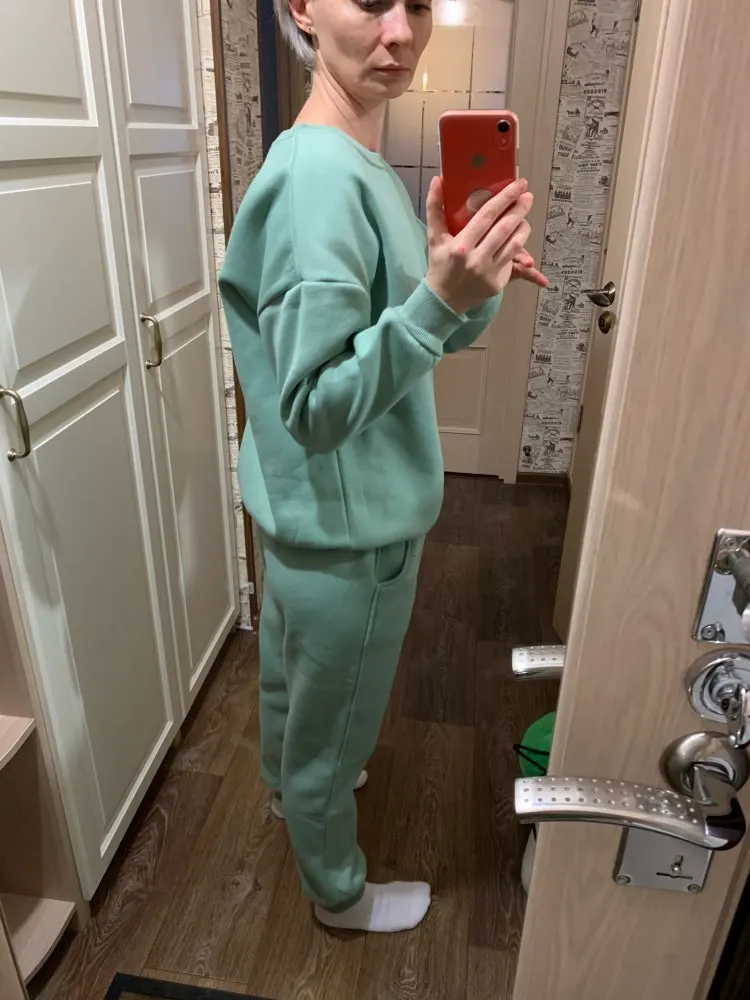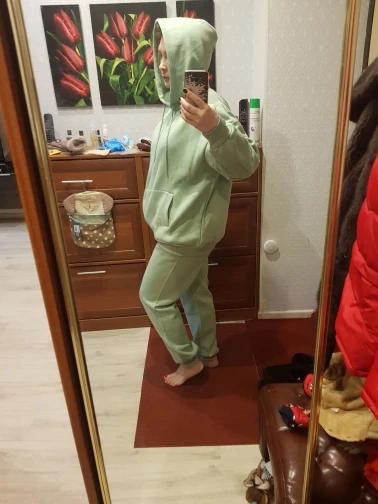 Костюм, в этом магазине Tangada заказала костюм на флисе, тепленький, в таком же цвете, как и детям своим в красивом яблочном цвете, размер М, мои параметры 168см рост и 85-70-98 село отлично и платье--худи в размер S, они тоже внутри на флисе, глубокий капюшон. Рекомендую магазин, я очень много уже вещей купила в этом магазине и всегда все супер. Кстати мужу тоже заказала в этом магазине такой же костюм, но в коричневом цвете и в размере XL. Этот костюм использовала в одной из своих капсул гардероба зимних. Я стилист и делаю Стильные обзоры качественных вещей с Алиэкспресс в инстаграм @aliexs_baby_mam