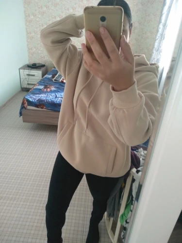 отличная толстовка,мягкая,теплая,обьемная,взяла xs на свой s т.к. не хотела чтобы она по длине была как платье,ниже бедра,т.к. мой рост 160,но чтобы была обьемной,вот по отзывам и взяла xs,отлично села как я и хотела,на последнем фото в сравнении по цвету с другой светлой толстовкой,эта по цвету более темная,карамельная , а другая молочная