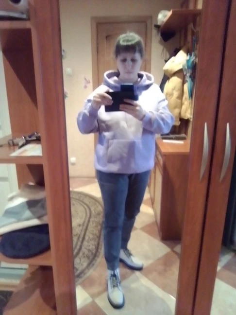 Толстовка очень клевая! На мой хс идеально! Оверсайзно, комфортно! Ткань приятная) Одевала толстовку в холодное время года уже, осенью, наверх жилетку, в принципе тепло. В машине без жилетки хорошо, толстовка тёплая. Я очень довольна, что заказала! Долго сомневалась! Осталось штанишки заказать)))