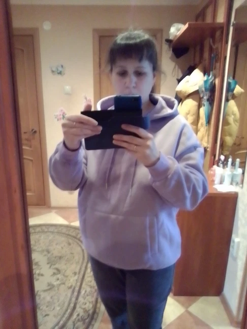 Классная толстовка, больше года назад заказывала бежевую, с ней все отлично, хотя ношу и стираю часто. Эта уже из другого материала, более тонкого и по ощущениям быстро скатается, посмотрим. Внешне все отлично, цвет совпадает с фото продавца. По ошибке заказал м, а не s, но пенять не буду, слегка великовато, но терпимо. Брала вместе с брюками, цвет и ткань идентичны, очень комфортный и тёплый костюм.