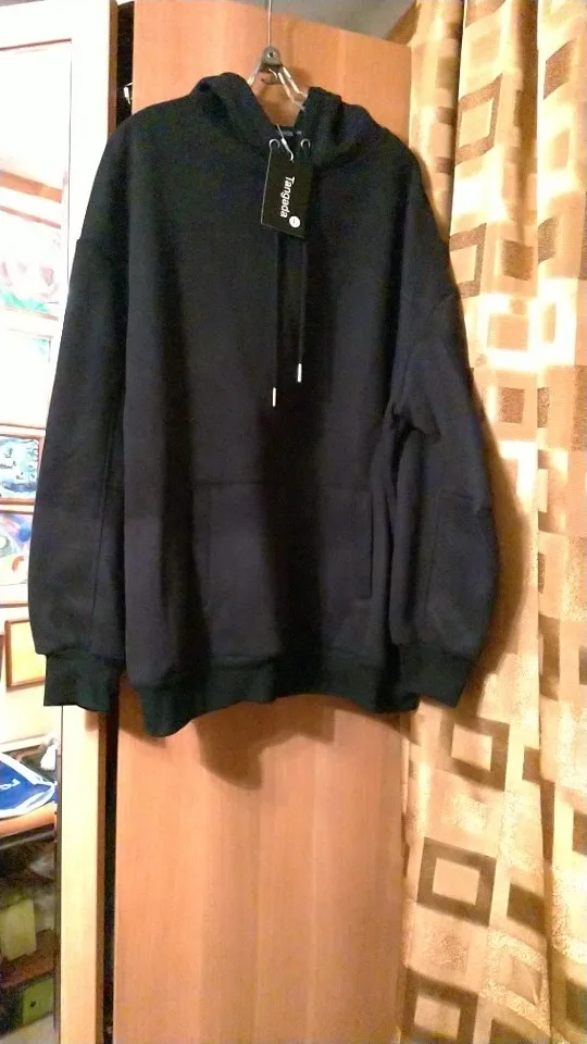 Качество конечно очень хорошее, но я не думала что худи будет настолько большое. Мои параметры грудь 84, талия 69, рост 158. Надо привыкнуть к фасону, хотя я ношу вещи оверсайз, но это слишком. Тёплое, не шуршит, не блестит, не элекризуется. Цвет на фото немного не тот, в реале зеленее.