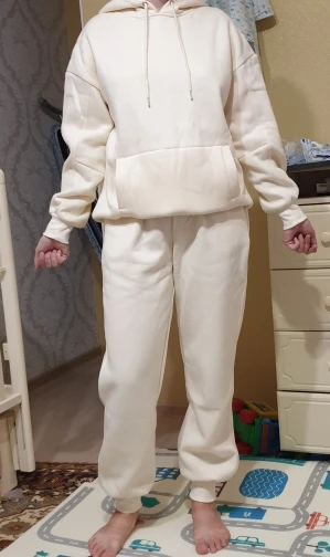 Костюм супер класс! Даже лучше чем я думала, качество супер, утеплённый. У меня рост 155, длина брюк хорошо(xs), размер худи тоже xs. Пришёл меньше чем за 2 недели до мск. Продавца рекомендую!!!!
