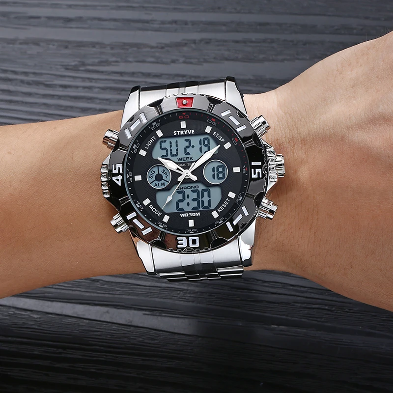 Часы Stryve Мужские кварцевые цифровые, брендовые Роскошные водонеп...