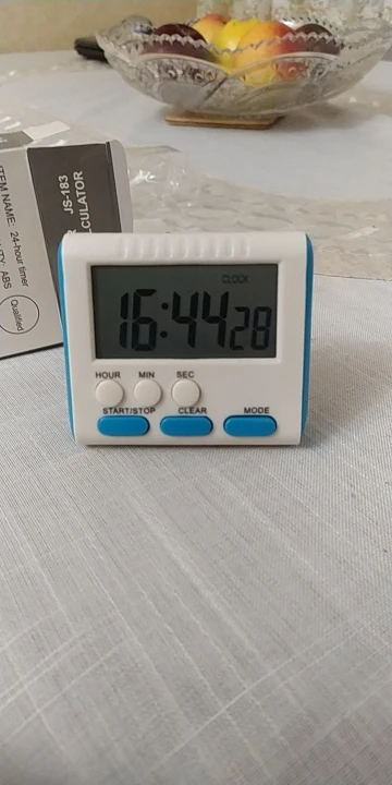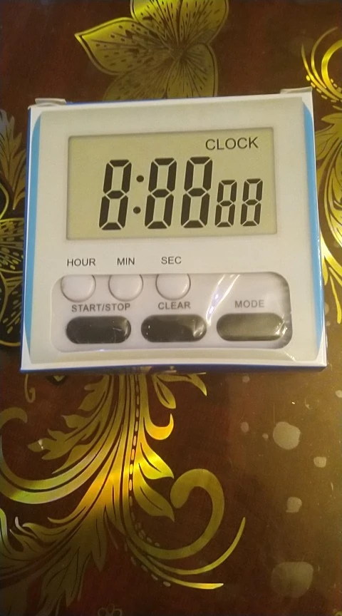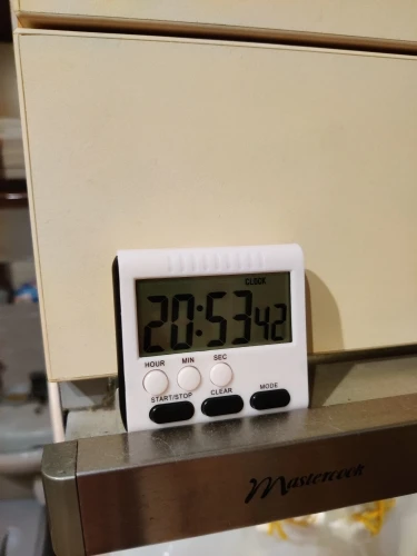 Товар пришёл очень быстро, за 2 недели. Упаковано очень хорошо. Спасибо продавцу за быструю доставку! Не очень довольны качеством таймера, слабая индикация ЖК-экрана. Сначала вообще не светился экран, поставили другую батарейку - то же самое, кнопки работают, звуковой сигнал есть, но изображение на экране слабое и видно только под определённым углом. Все батарейки новые. Только с третьей батарейки (Энерджайзер, новая) стало лучше видно экран. Возможно, это проблемы одного конкретного таймера. Хороший размер, не очень большой. Очень удобное крепление таймера - и магнит, и прищепка, вообще супер.