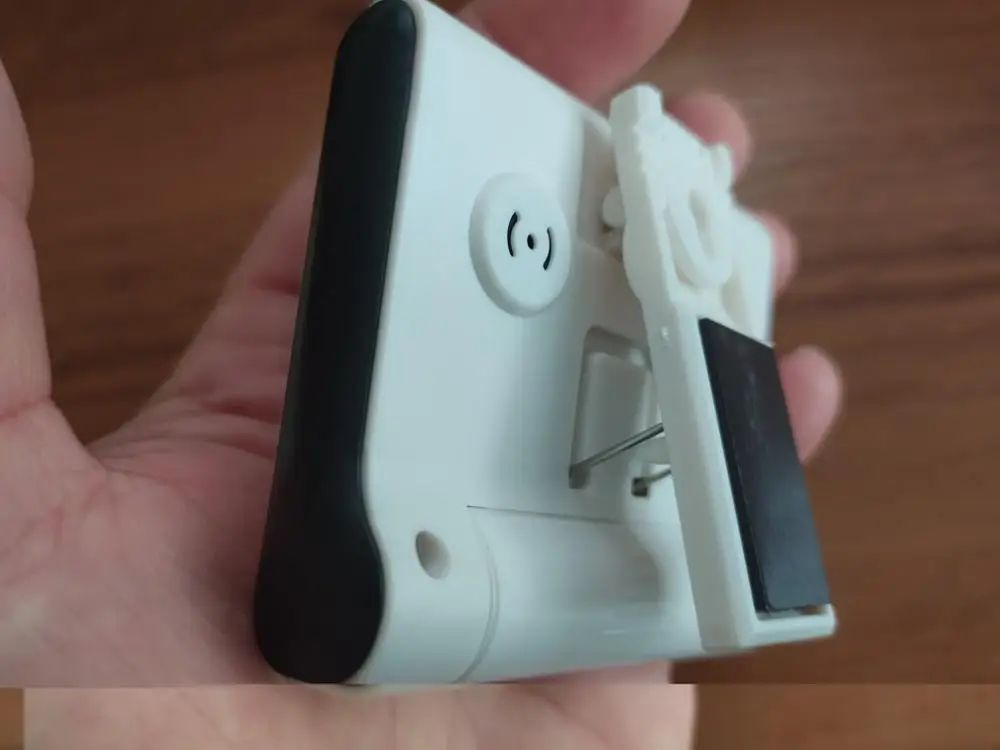 Маленький и удобный. Можно поставить, подвесить и на магнитик прилепить