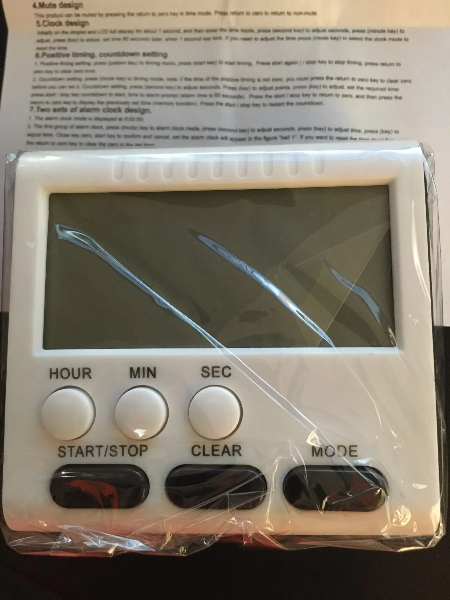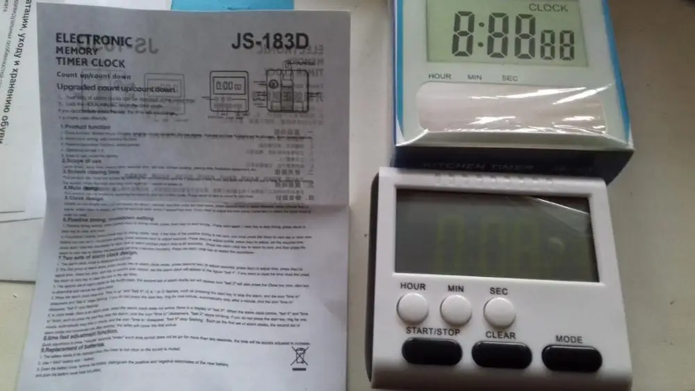 Дошла в отличном состоянии. Хорошо упаковано. Инструкция на английском и китайском, но легко разобраться. Четыре программы. 1 реальное время, 2 таймер обратного счета и 3,4 будильник.