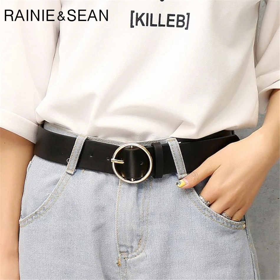 Ремень RAINIE SEAN женский кожаный ремень с круглой пряжкой, однотонный, верблюжий, черный, белый, золотой, повседневный пояс для женщин