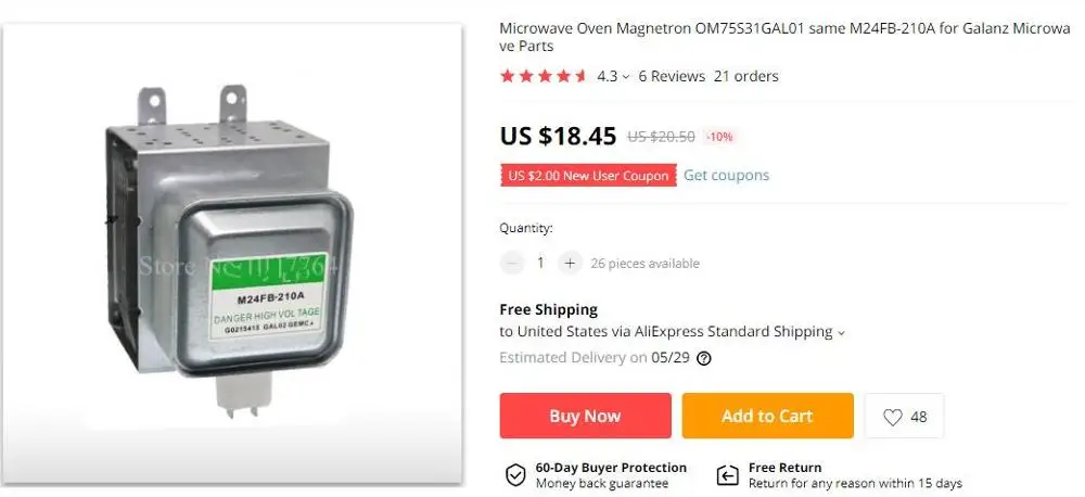 Не было проблем с этим. Микроволновая Печь работает без проблем после замены части. Рекомендованный