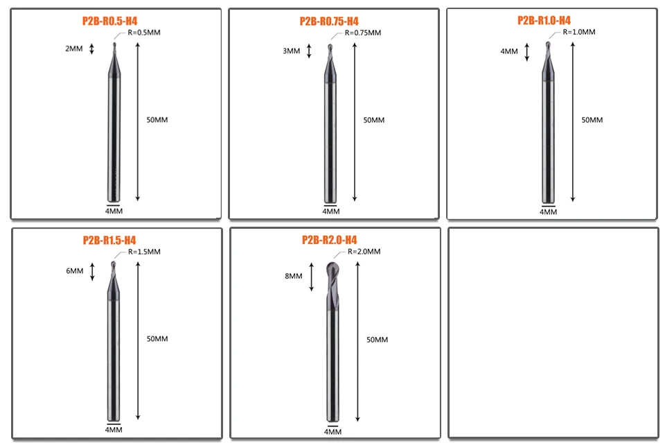 Концевая фреза с 2 канавками R0.5-R6.0, 1 шт., Концевая фреза с ЧПУ для обработки металлических поверхностей и пазов, концевые фрезы с покрытием для hrc50