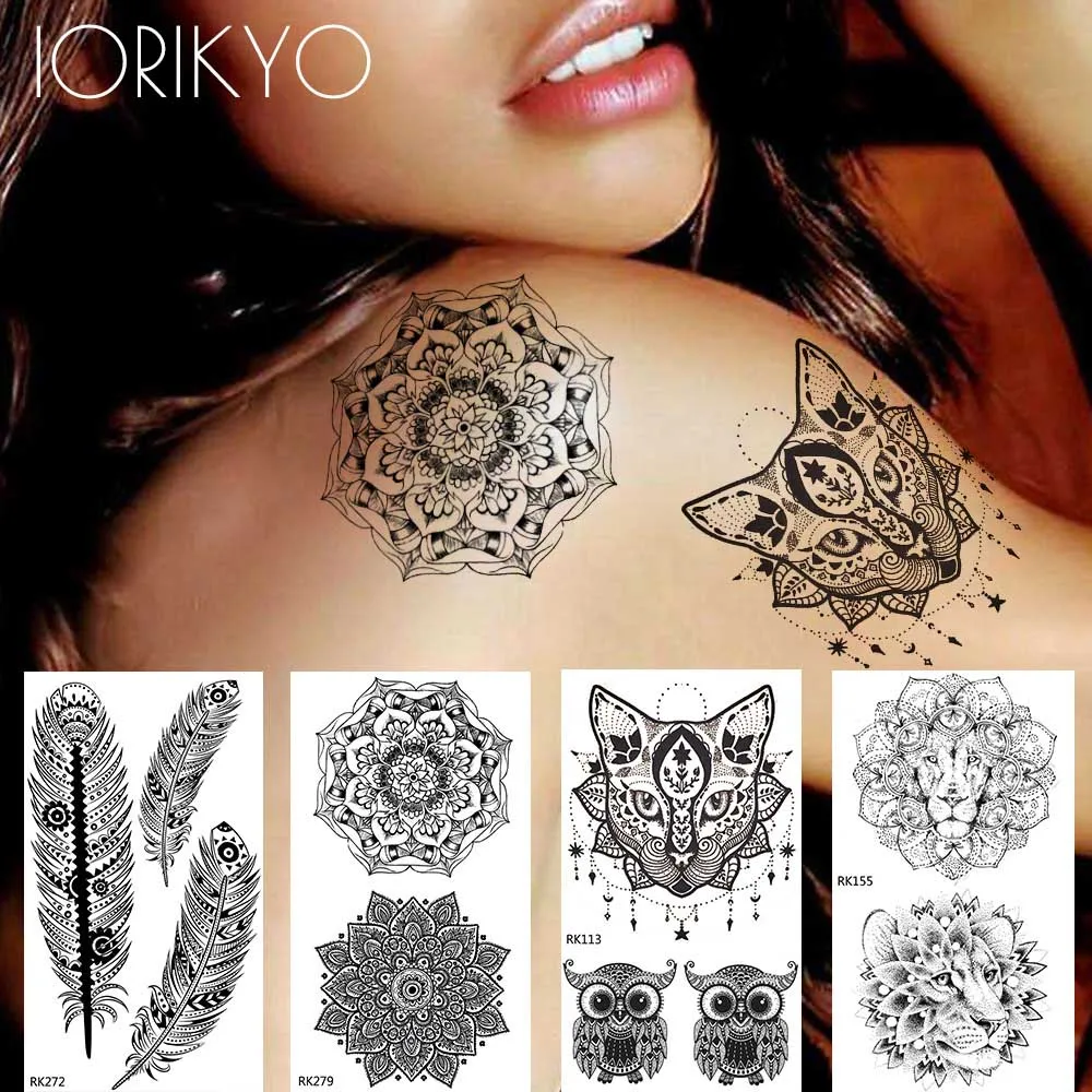 IORIKYO поддельные маленькие наклейки для тату с кошкой, женские черные флисовые кружевные цветочные временные татуировки с тигром, водонепроницаемые татуировки для девушек