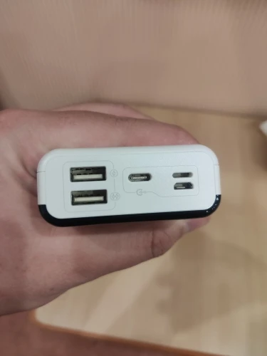 Отличный повербанк, красивый, но оказался таким огромным и тяжелым, чего я не ожидала) Приложу фотографии для сравнения со старым. По ощущениям он весит гр 600, так что чувствую, что руки точно накачаю)))
