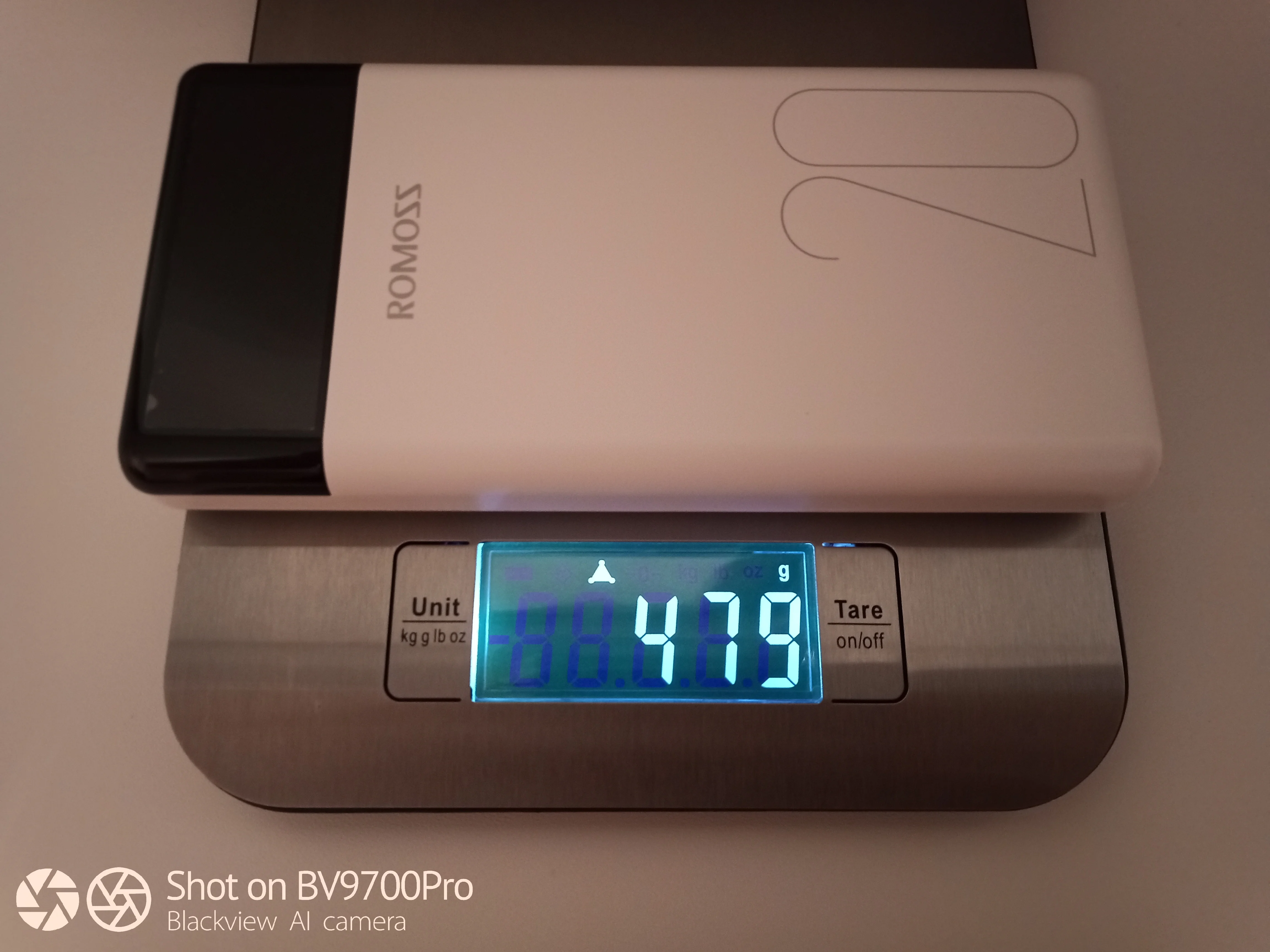 Весит эта штука на 20к 420 грамм :) выглядит стильно, добралась до Питера за неделю. Скорость заряда конечно медленная. Прибыла с зарядом 71%, до 80 заряжалась больше часа. На самом павербанке написано, что реальный объём может быть вплоть до 12500, никак не 20000. Но покупкой я довольна, давно хотела заменить свой старый, так что тут ещё по скидке и с купоном вышло очень привлекательно