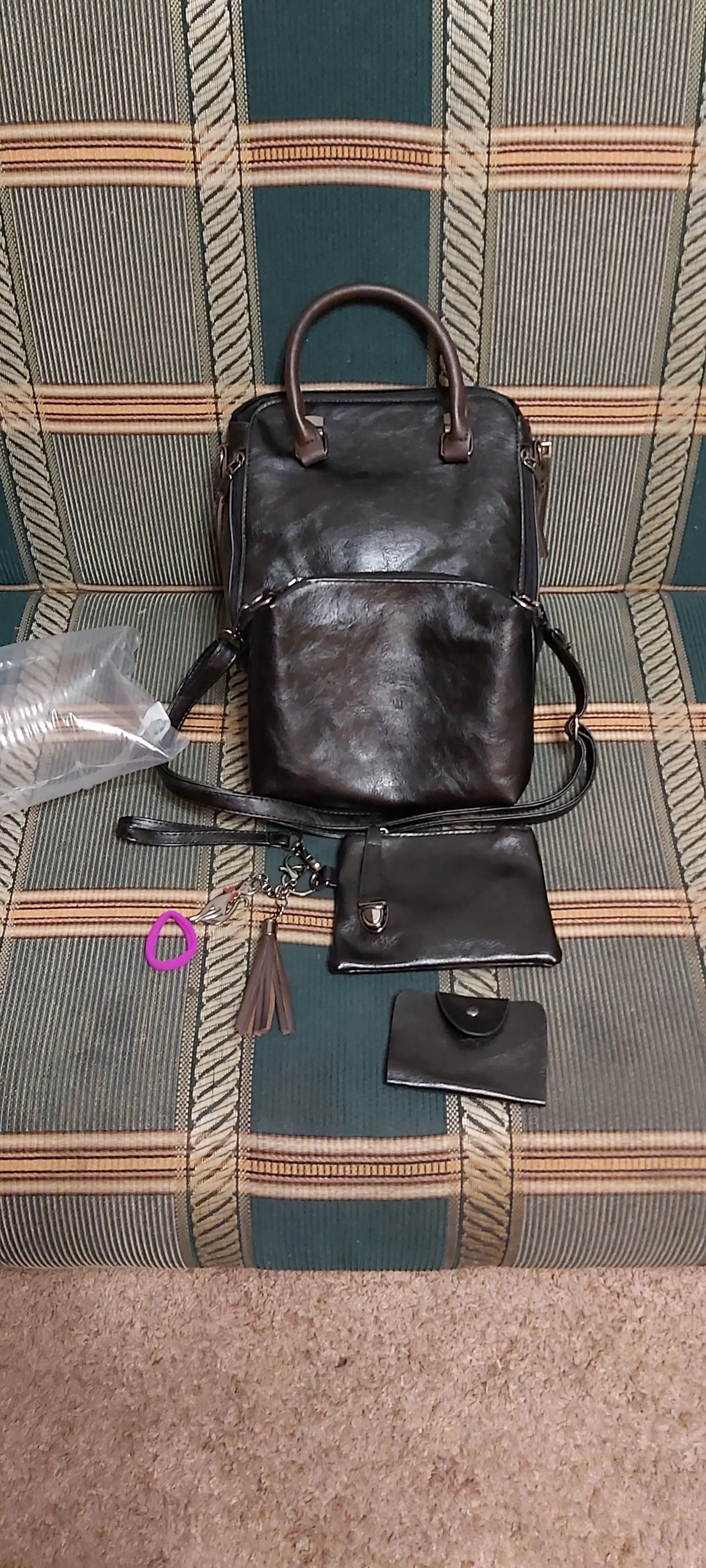 Все соответствует описанию, сумка немного меньше по размеру, чем думала, но все равно очень понравилось. Рекомендую. В наборе 4 предмета, цена отличная. Очень довольна. Спасибо.