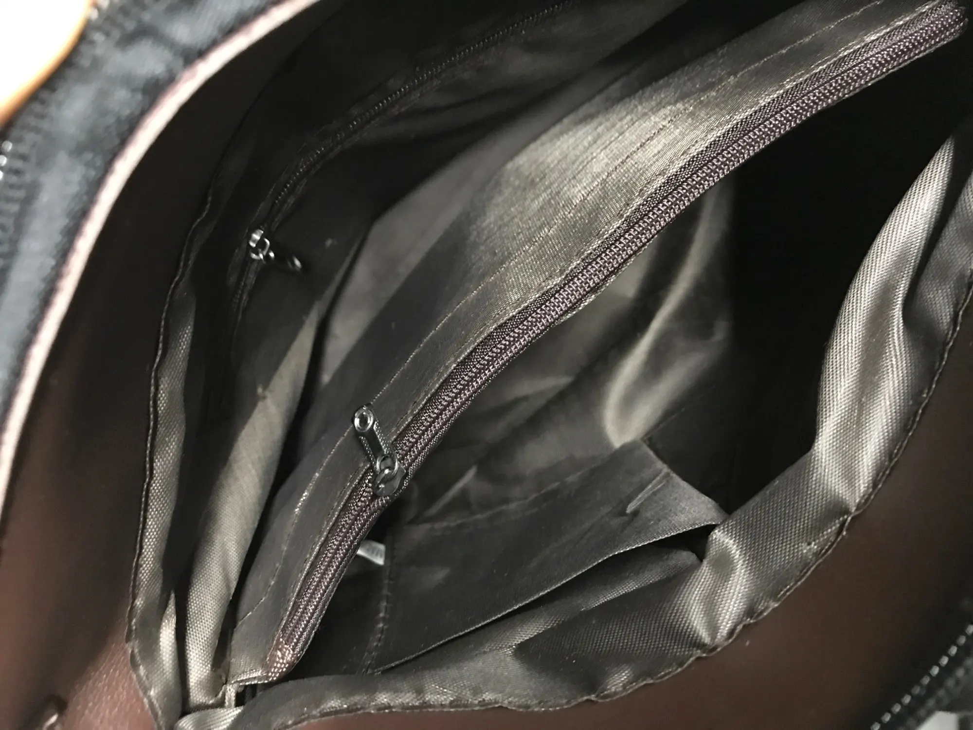 Сумка очень понравилась, сшита качественно. Исключение составляет клатч, у него не прошито дно, это печалит, но не критично. По размеру и количеству карманов в сумке всё устроило. Рекомендую.
