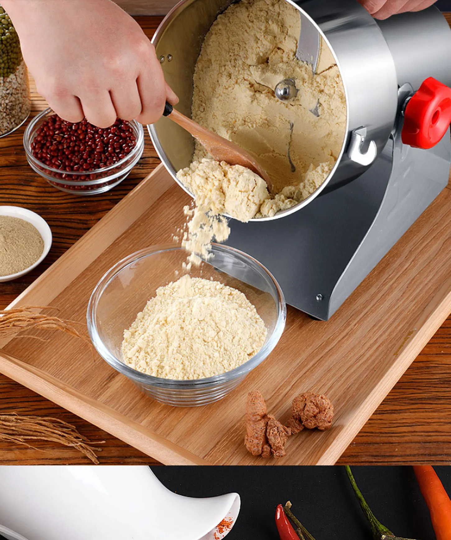 2, супер высокоскоростной двигатель как движущая сила, новейшее антиблокирующее лезвие, основное лезвие удлинено, более тщательно измельчено, конечность лекарственного порошка (наиболее высокая степень чистоты лекарственного порошка 50-300 сеток); Диапазон дробления: три семерки, горная стрела, ладан, мирра, Ослик скрывает желатин, корм, Гиппокамп, астрагал и т. Д. Может очень хорошо дробить.