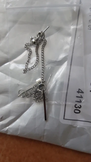 Серьги свободно сидят в полиэтиленовом пакете, а не на картонной/бумажной подставке. Но за цену и состояние, его идеальное. (он не запутывается в сумке в любом случае). Мне интересно узнать, станет ли он зеленым после использования.