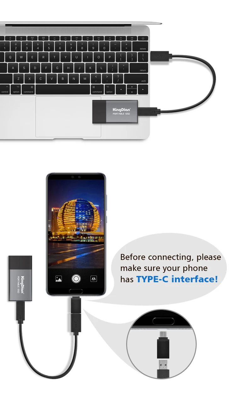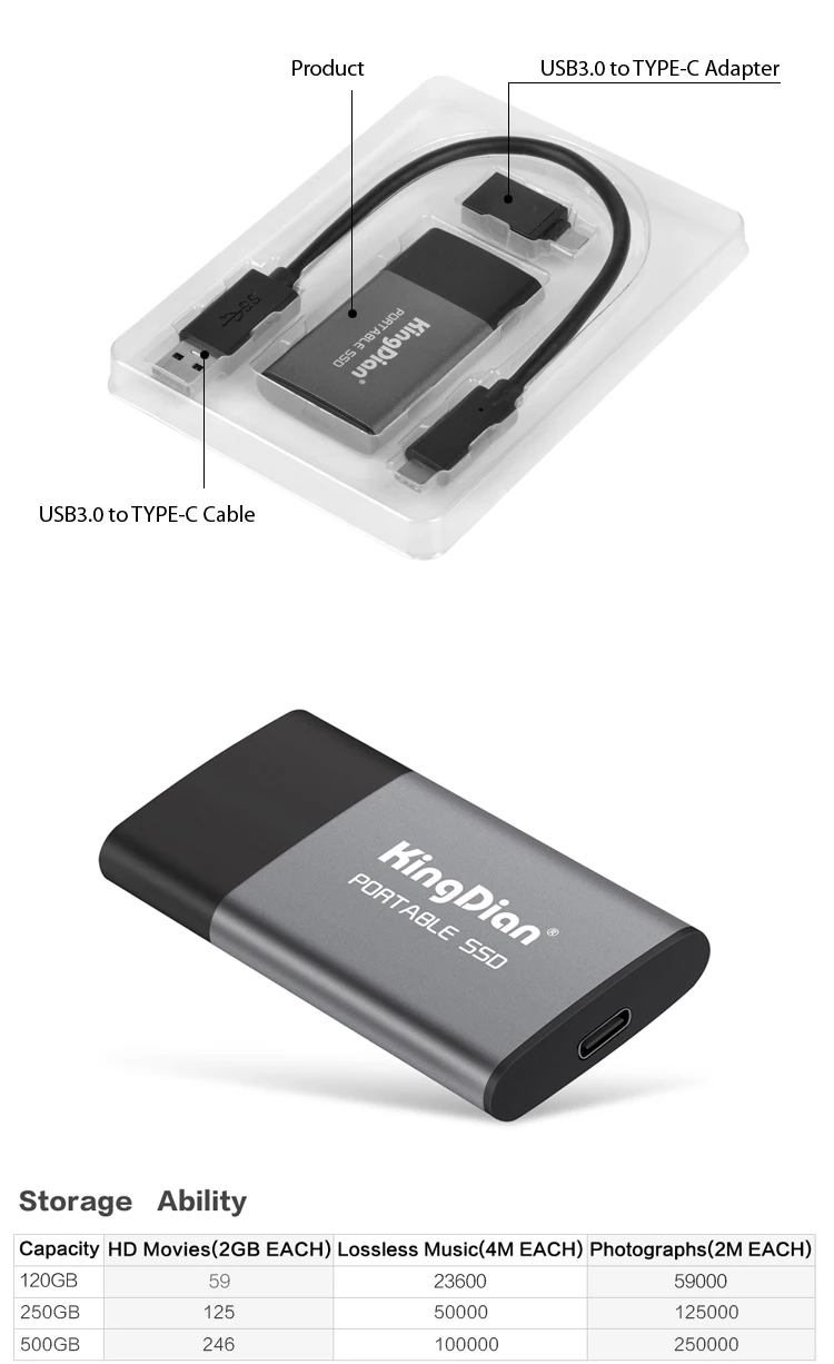 Внешний жесткий диск KingDian, портативный SSD 120 ГБ, 250 ГБ, 500 ...