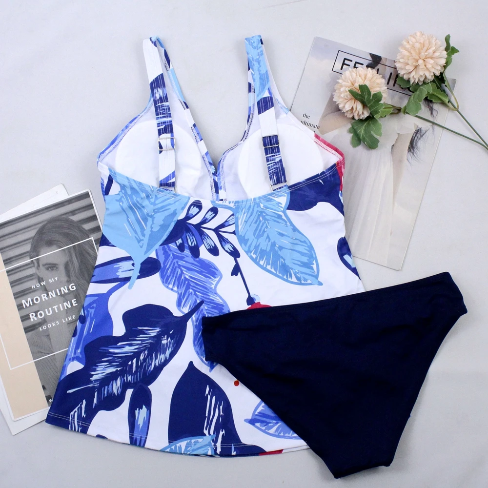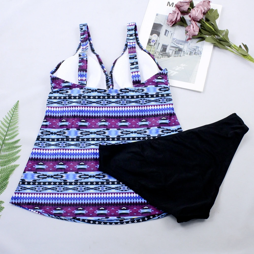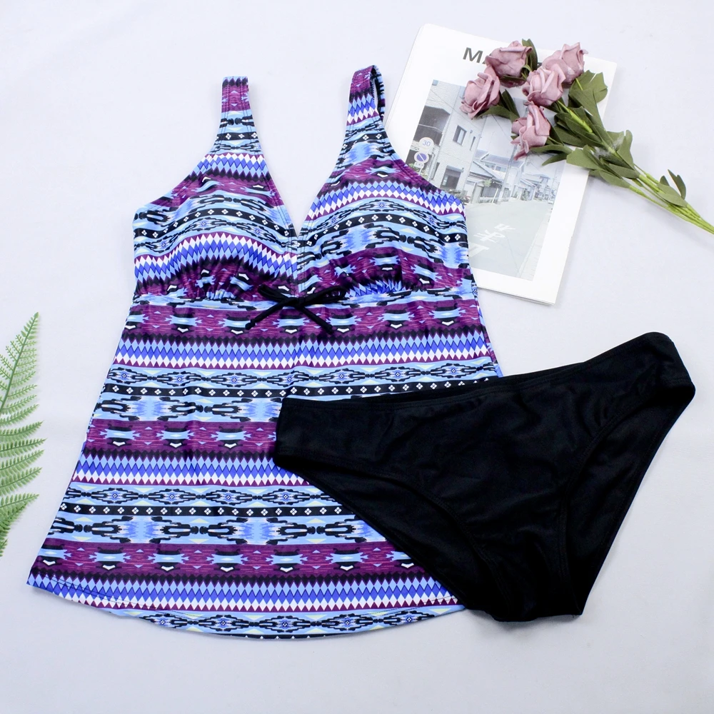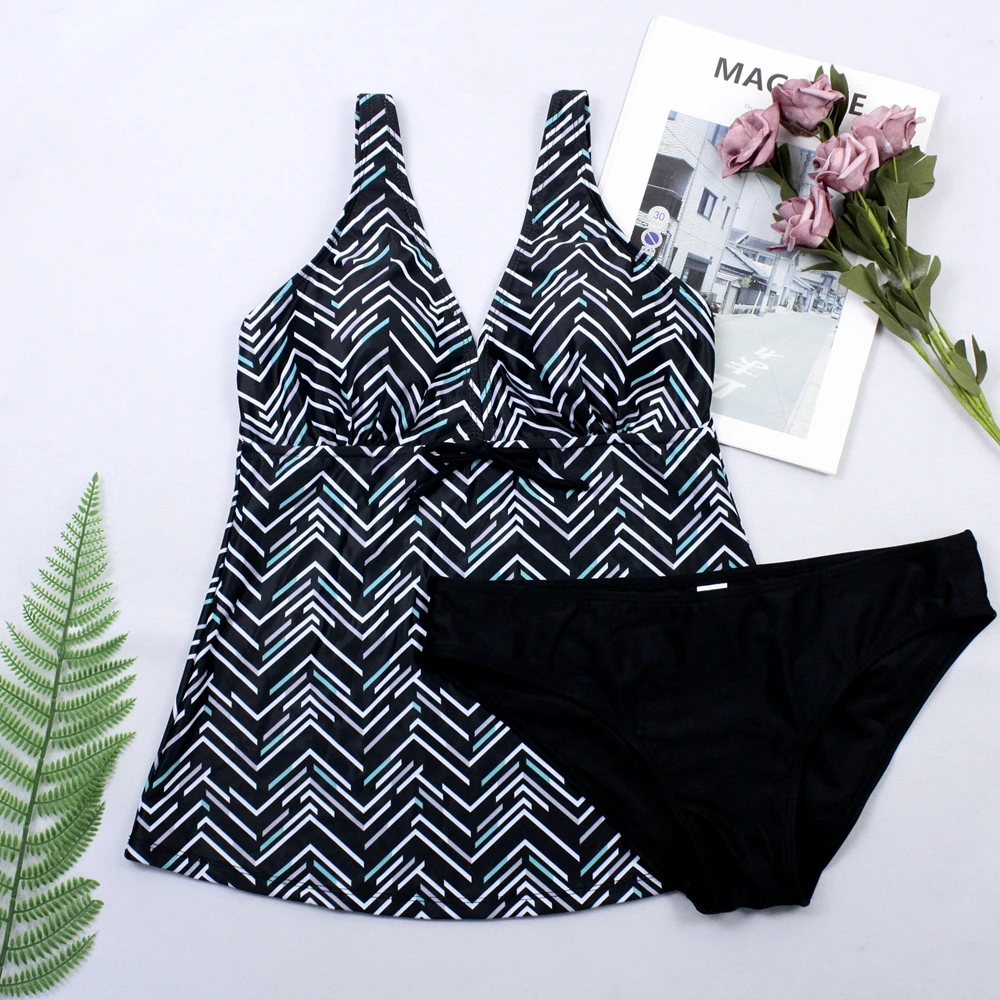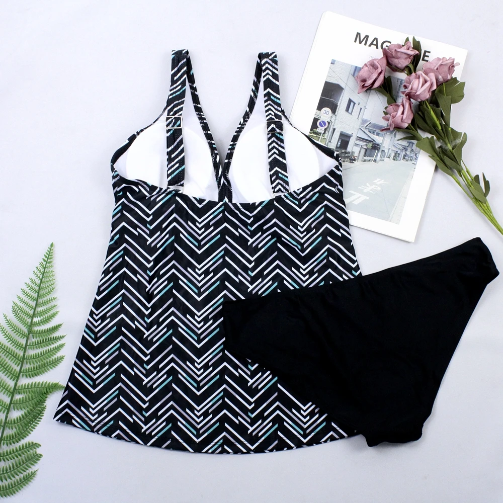 Новинка 2021, женский купальник Танкини, комплект размера плюс из двух предметов, винтажный спортивный купальник с высокой талией, пуш-ап, бикини 3XL