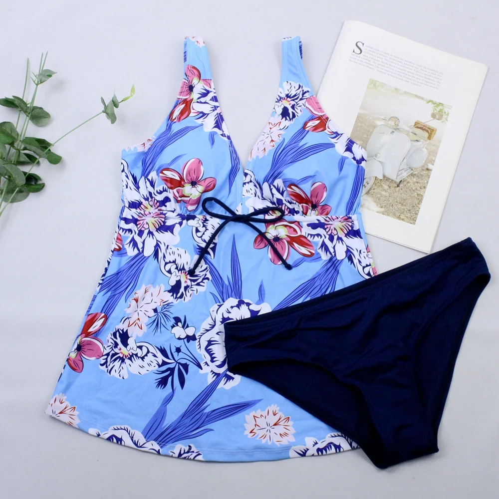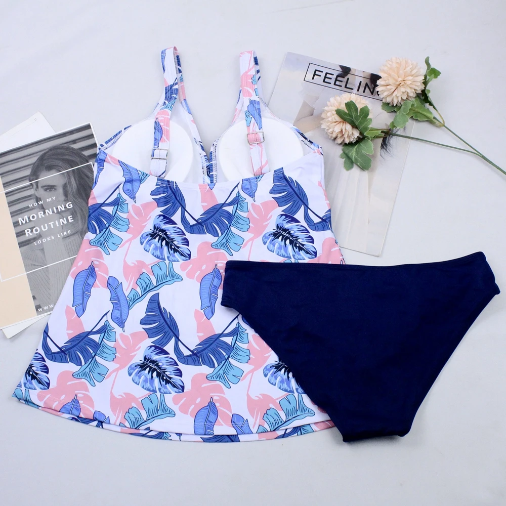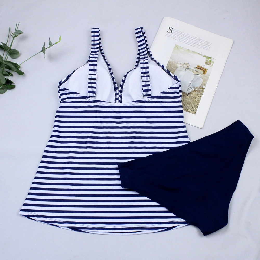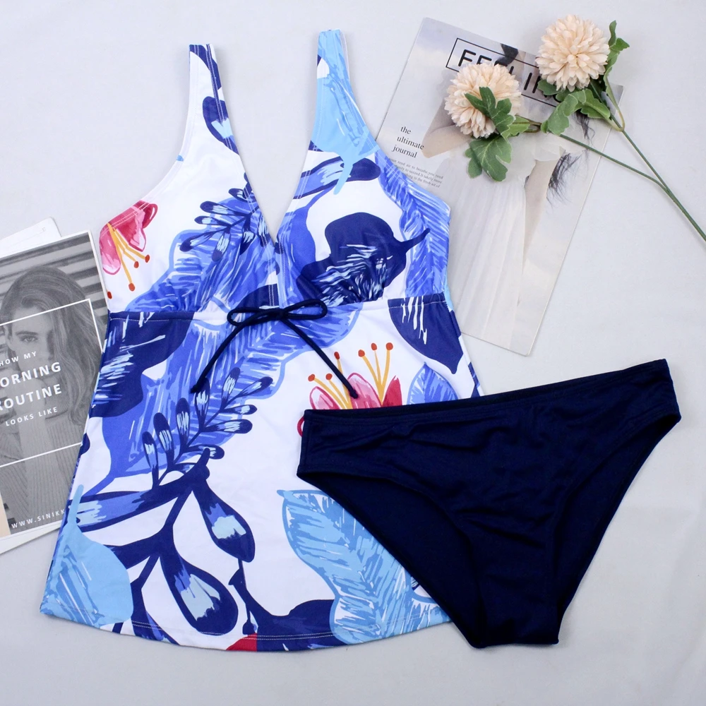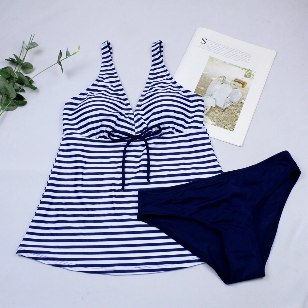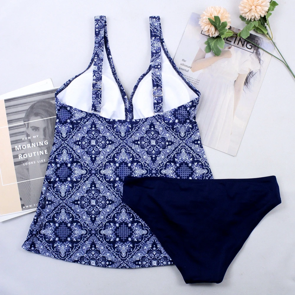 Новинка 2021, женский купальник Танкини, комплект размера плюс из двух предметов, винтажный спортивный купальник с высокой талией, пуш-ап, бикини 3XL
