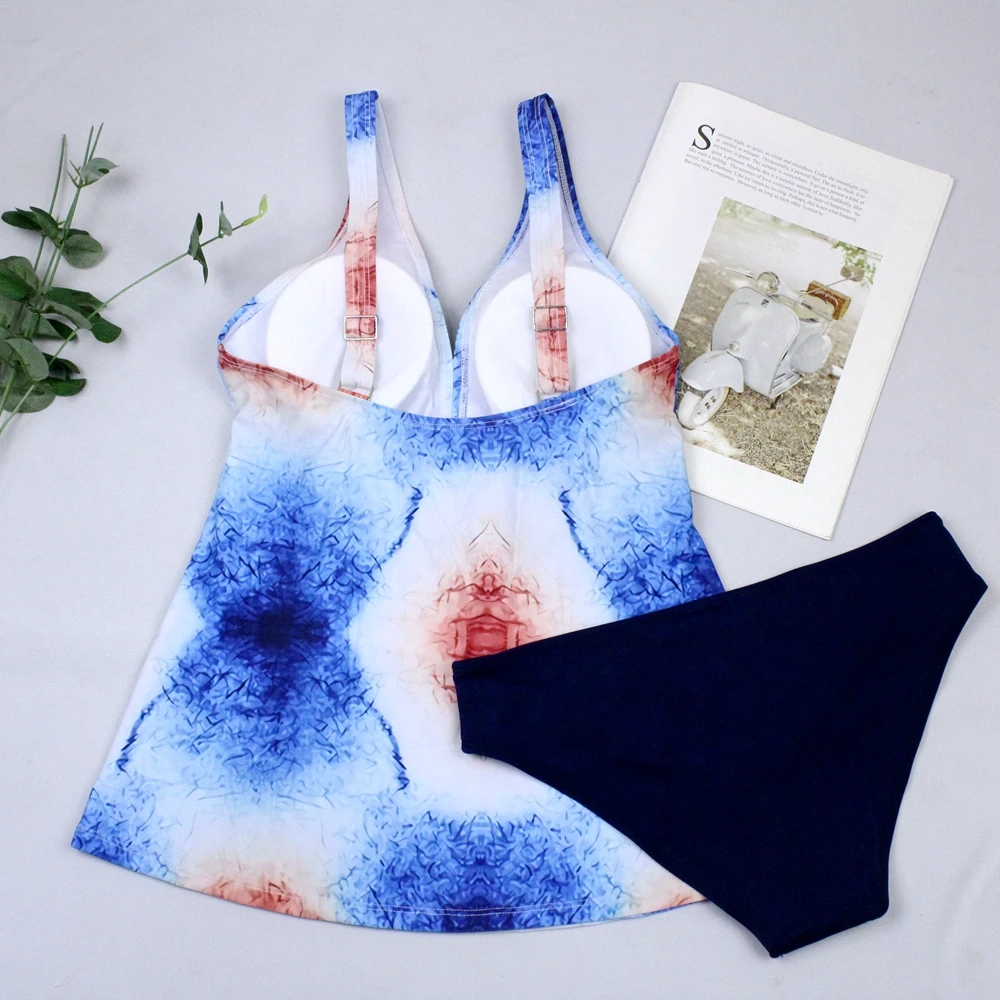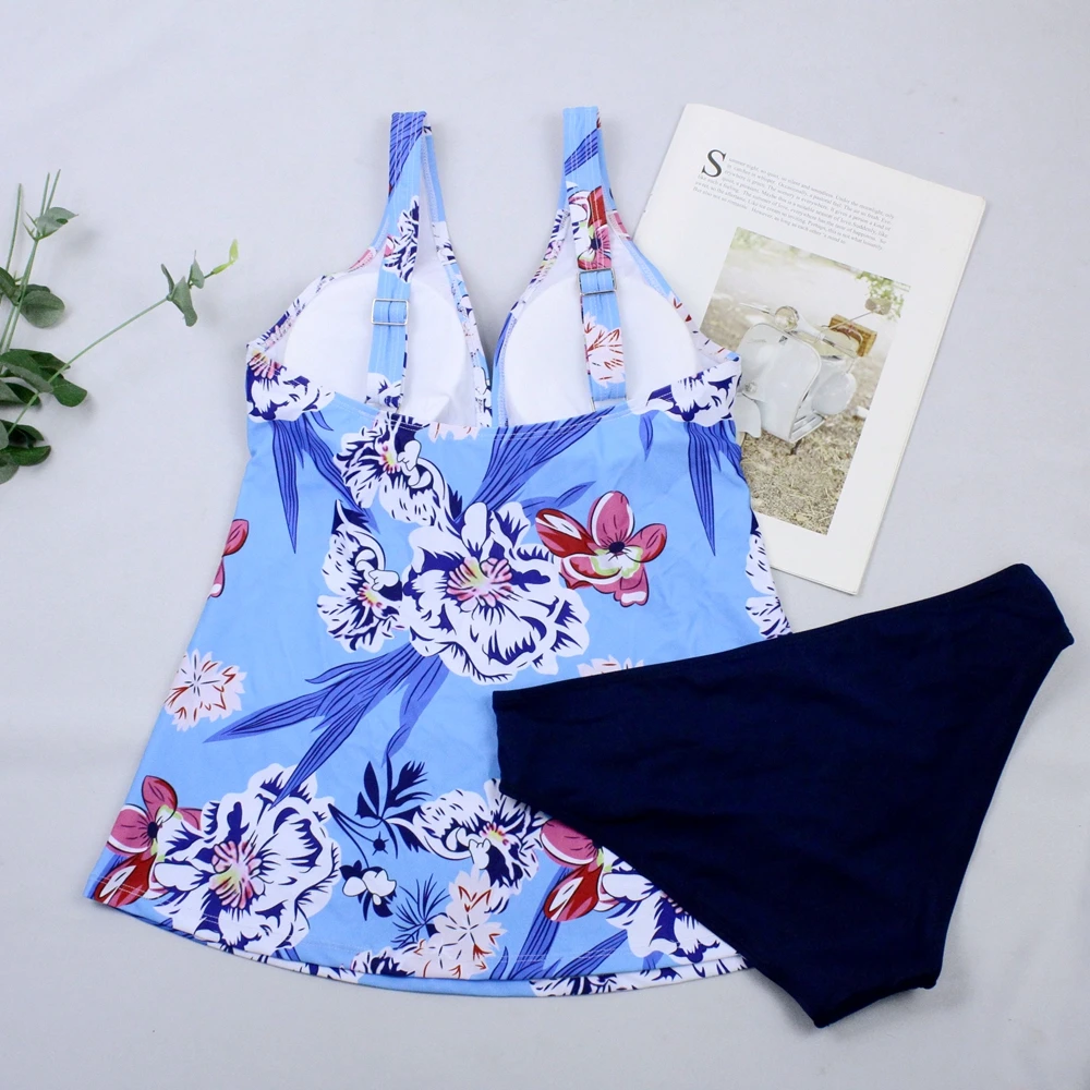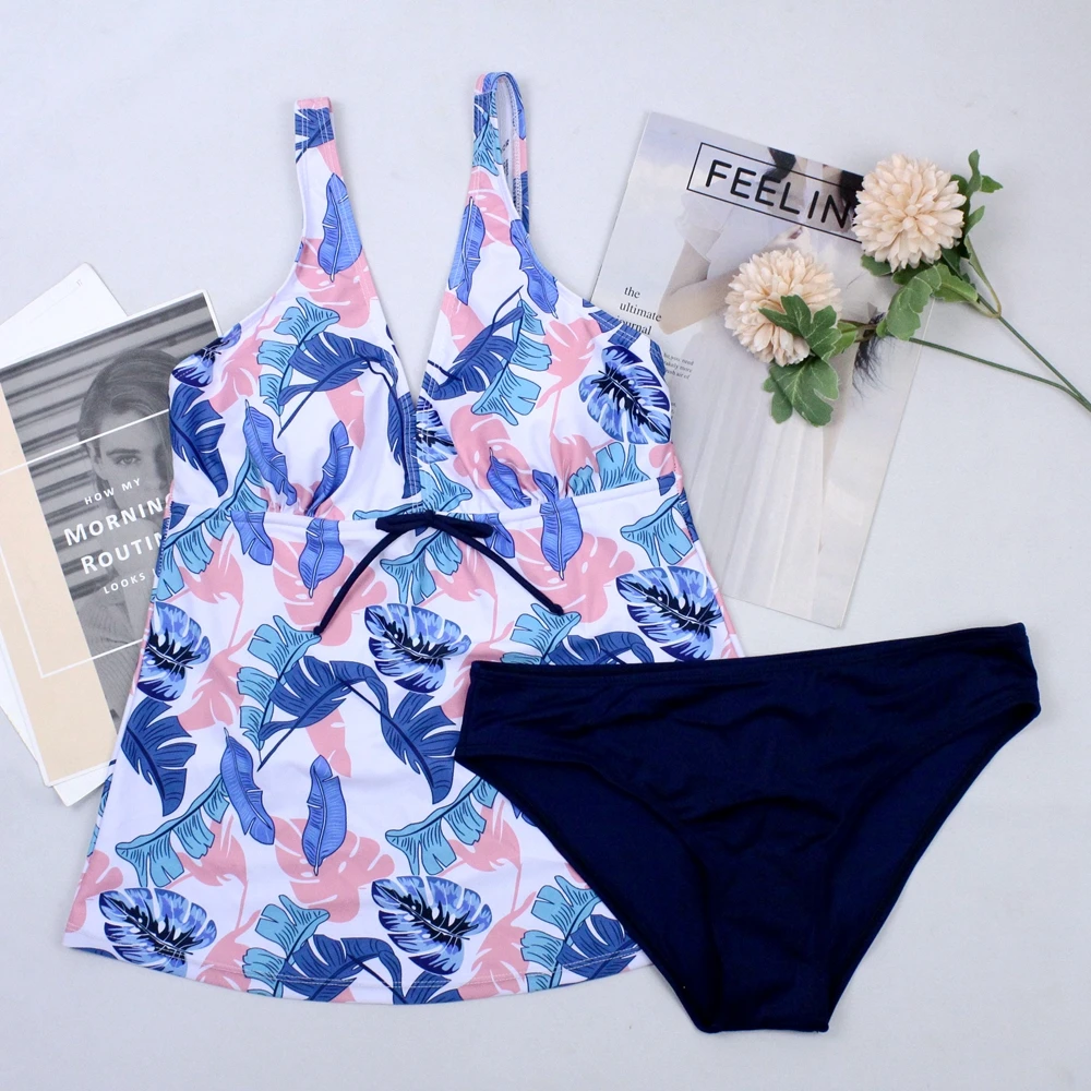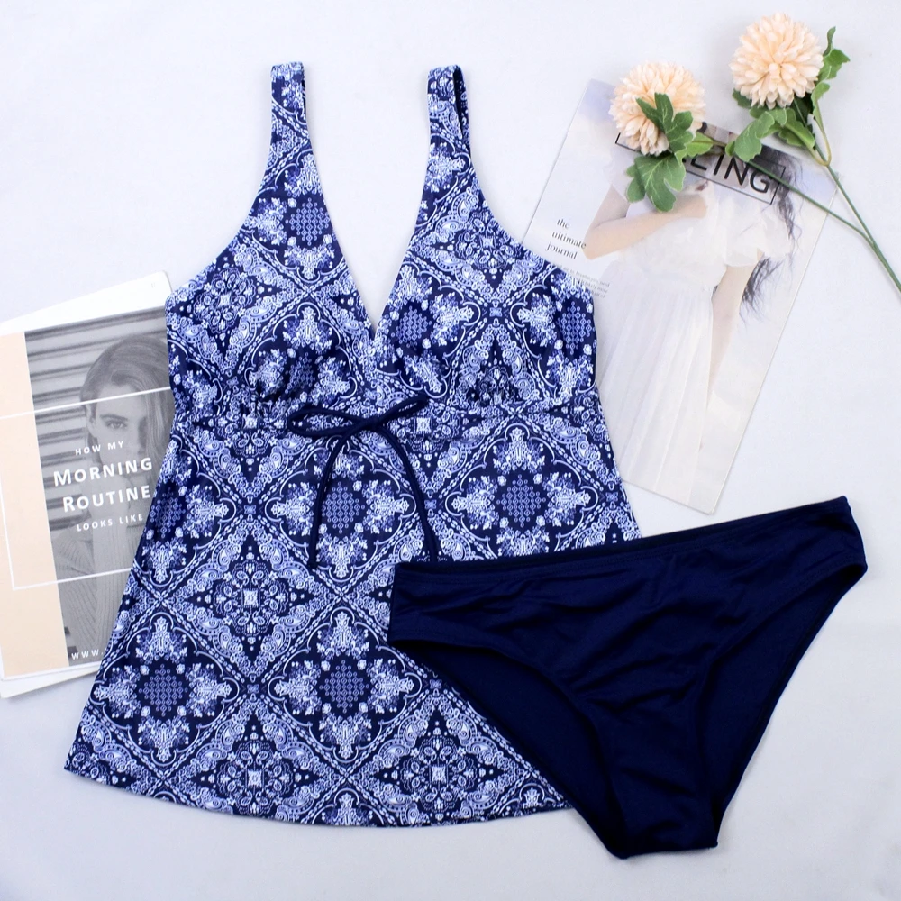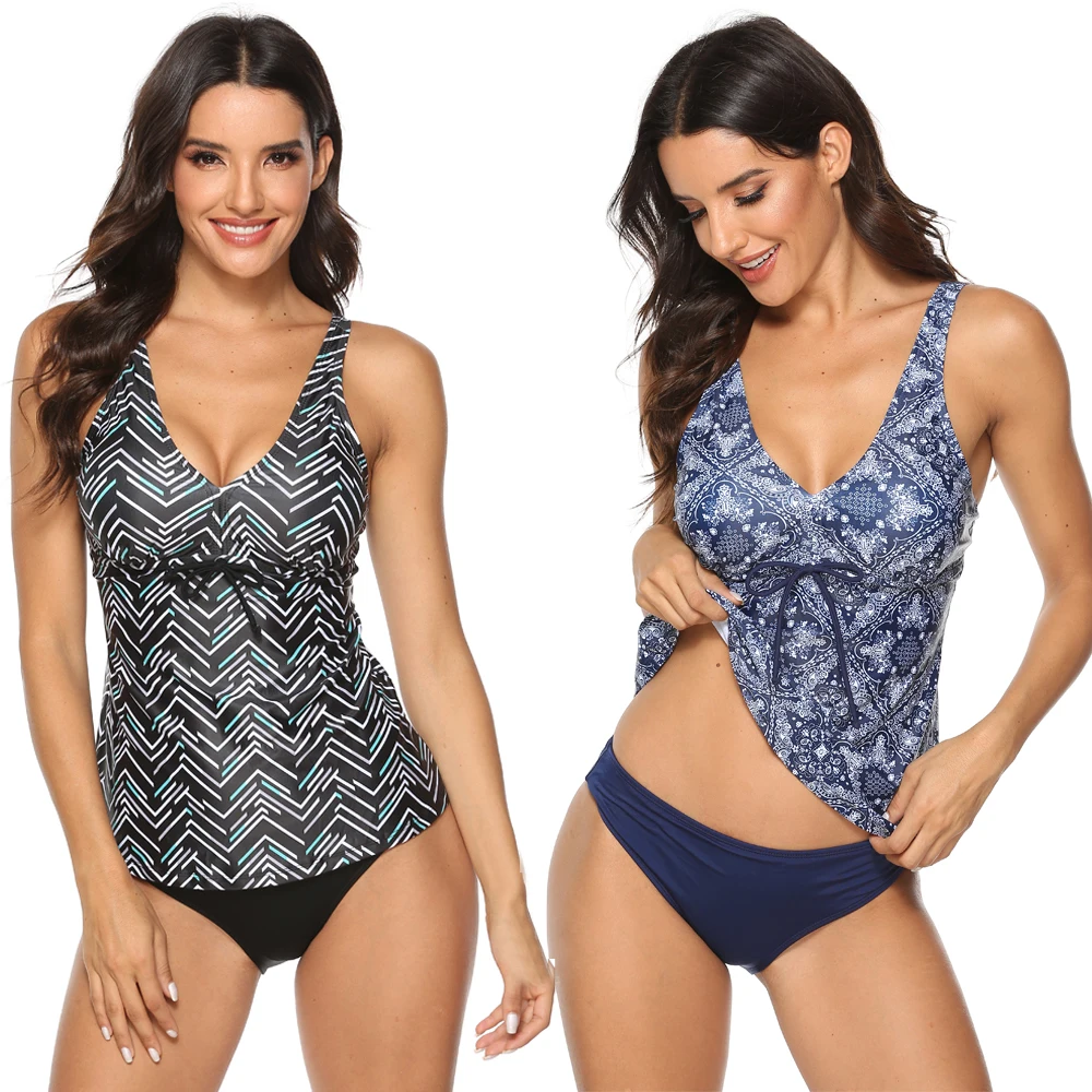 Новинка 2021, женский купальник Танкини, комплект размера плюс из двух предметов, винтажный спортивный купальник с высокой талией, пуш-ап, бикини 3XL