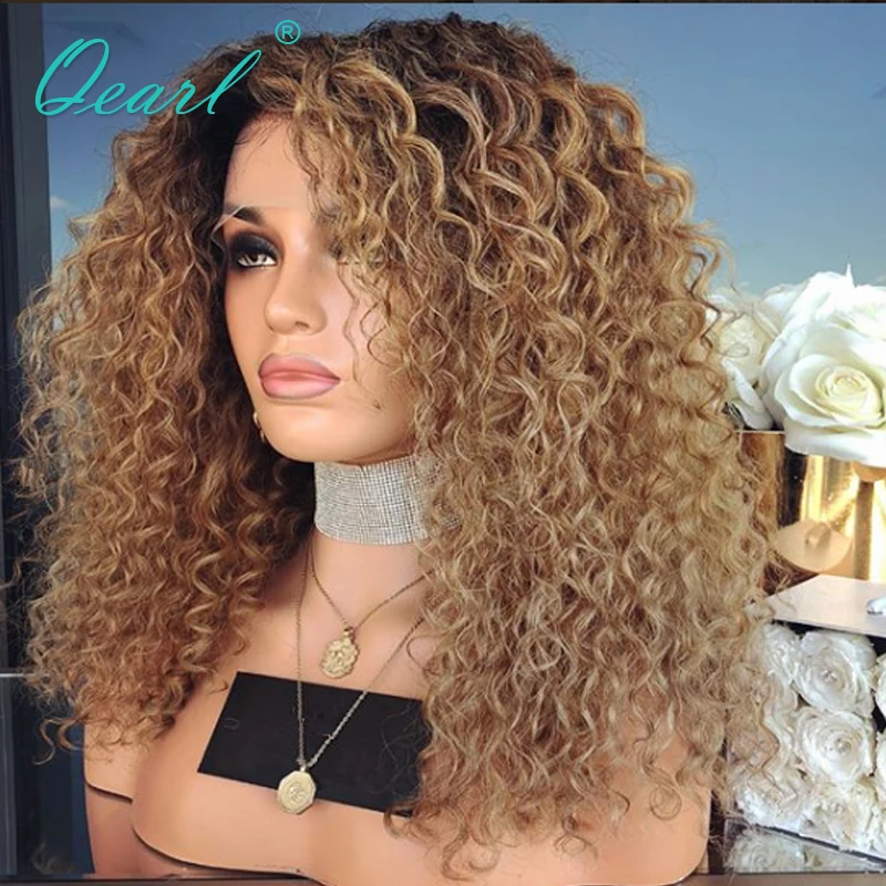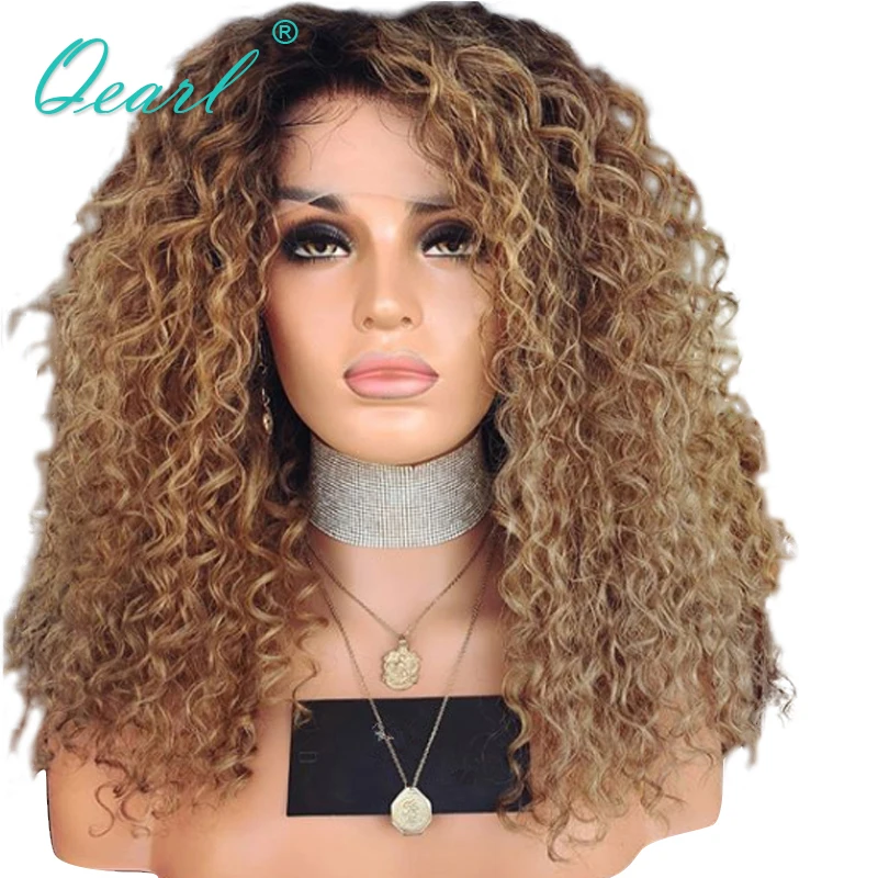 Glueless человеческие волосы кружевные передние парики для женщин кудрявые афро бразильские волосы Remy Цвет омбре с темными корнями 13х4 Qearl