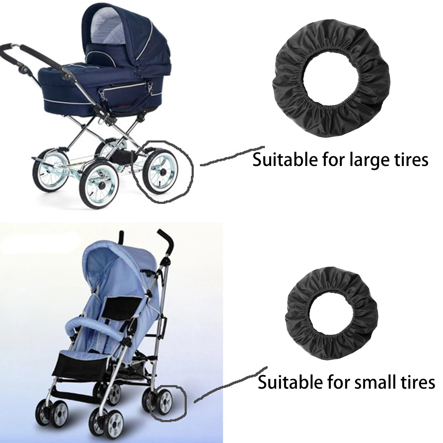 Behogar 2 шт., большой2 шт., маленький размер, Пыленепроницаемая ткань Оксфорд, чехол для колеса, защитный чехол для детской коляски, тележки, коляски