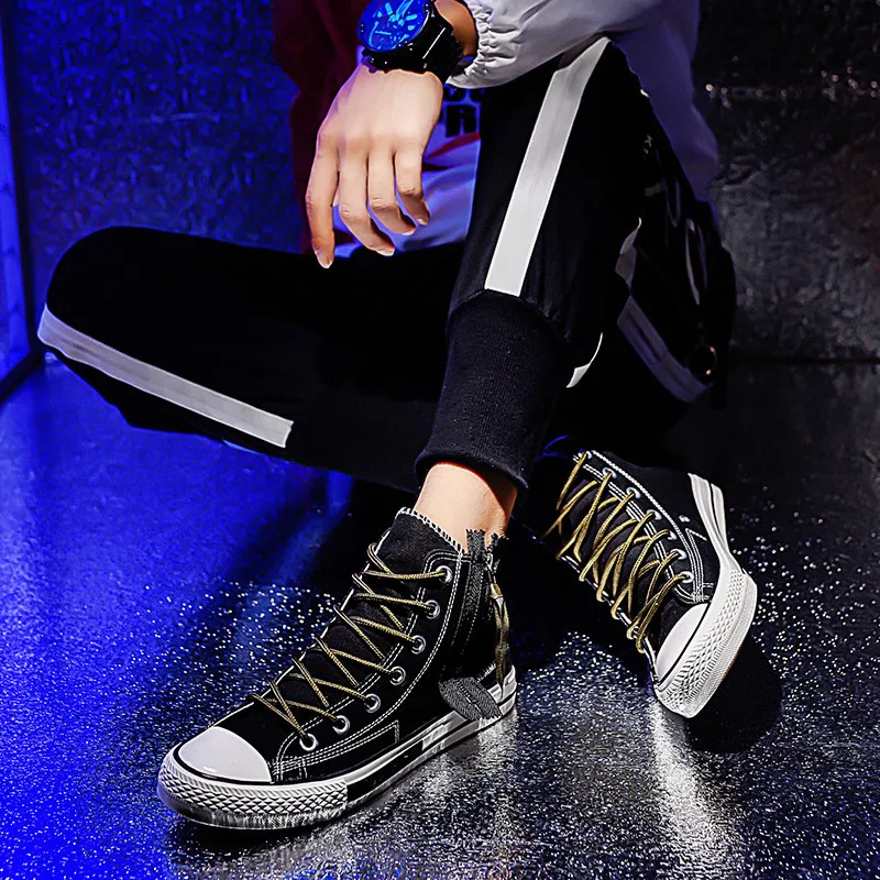 Кеды мужские с круглым носком, Классические холщовые кроссовки, на шнуровке, повседневная обувь на плоской подошве, украшение для скейтбординга, боковая молния, в стиле ретро