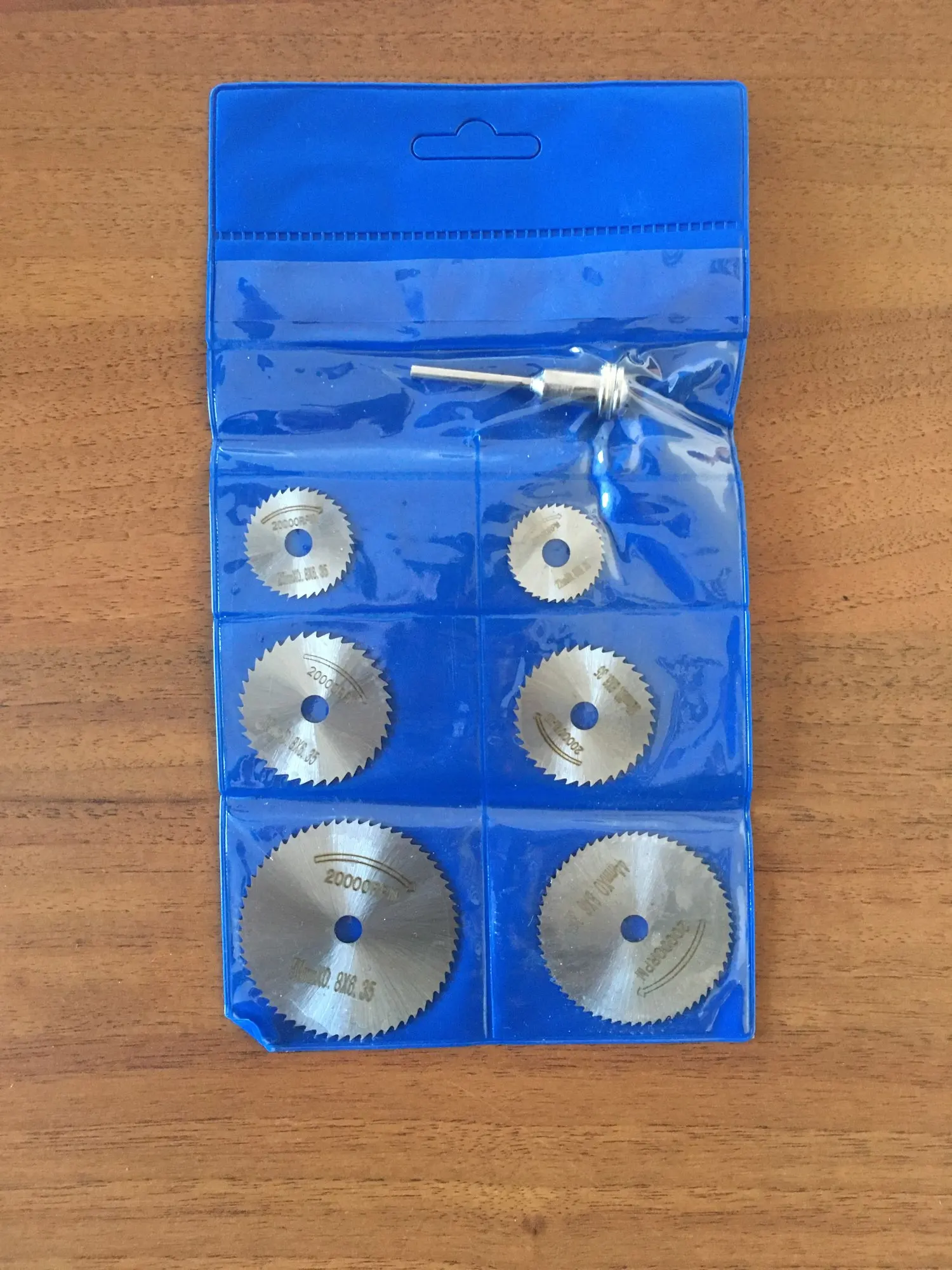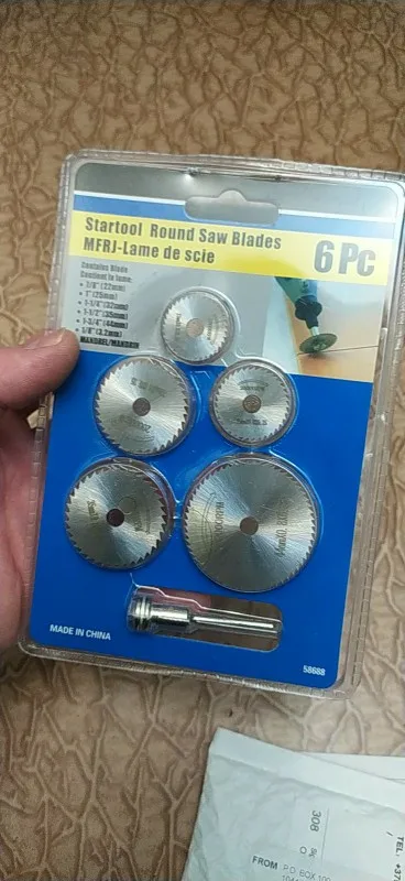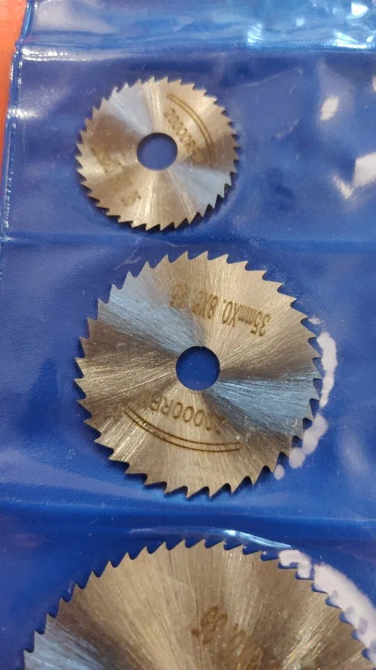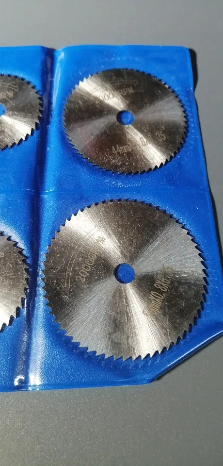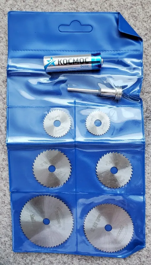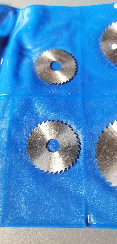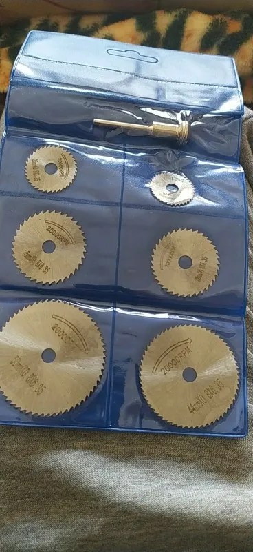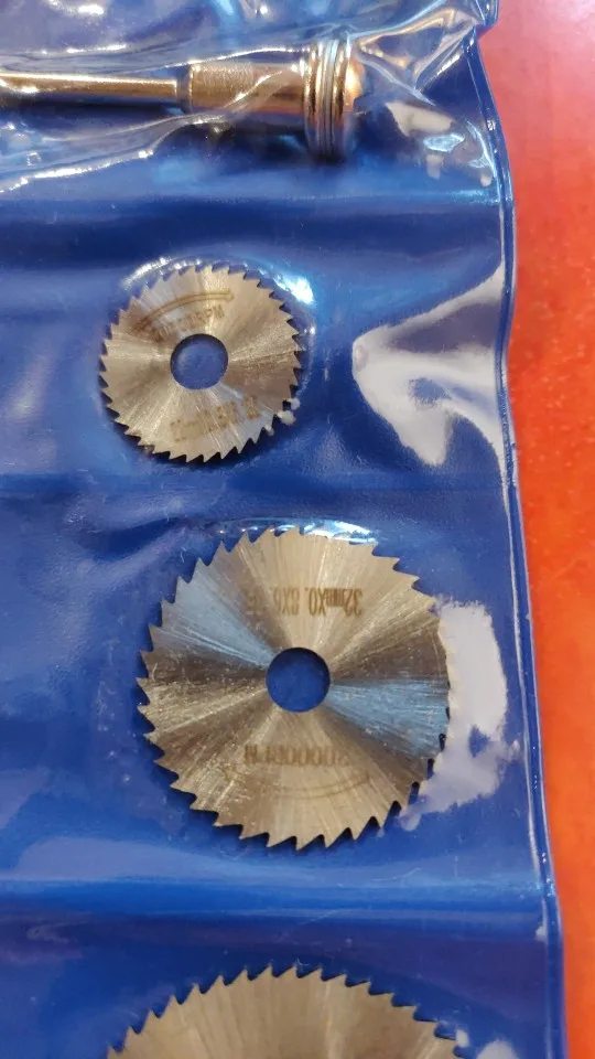 Товар пришёл за 20 дней до Московской области. Это весьма быстро учитывая загруженность после 11.11. Посылка пришла в пупырке. Диски покрыты тонким слоем какой то жидкой смазки и запаяны в кармашках. К сожалению пока что в работе опробовать не получилось, но думаю что с пластиком справятся легко, металл рубить ими неплановую, для этого использую абразивные диски.