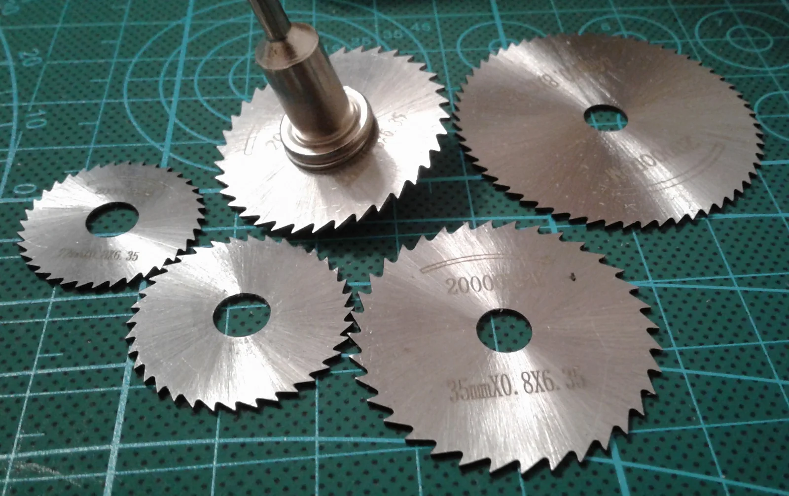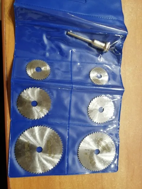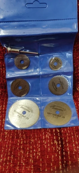Заказ пришел в консолидации. Хорошие диски, описанию соответствуют. Толщина дисков (замерил микрометром) - 0,8мм. Центровка диска в оснастке удовлетворительная. Установочный винт на оснастке с центрирующим выступом. Пластик режет хорошо, но плавит. Дерево пилит ровно, проверил на сосновом бруске. На граверах мощностью до 300W вполне можно использовать два маленьких диска. Большие диски лучше применять с более мощным инструментом. Товаром и магазином доволен.