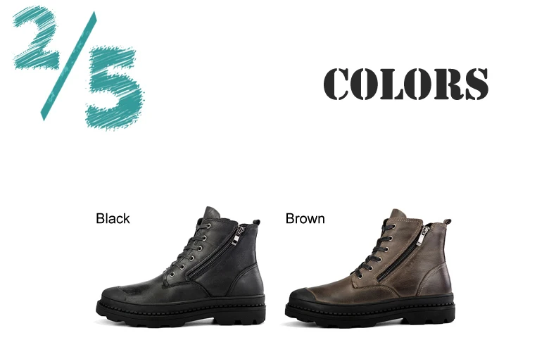 Ботинки натуральна кожа, внутри мех . Подошва прорезинина, высокая- поэтому не промокает , это очень круто !!!! Удобные молнии с двух сторон .Размер подошёл на российский 43размер . Цвет универсальный - темно серый ( хаки). Рекомендую .