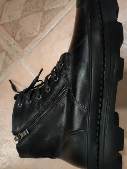Ботинки пришли без коробки, упакованы в воздушную капсулу. В итоге все в заломах (на фото видно). Скорее всего это не натуральная кожа. Посмотрим на сколько их хватит. Размер соответствует. Красная цена им тыщи 1,5 не больше.