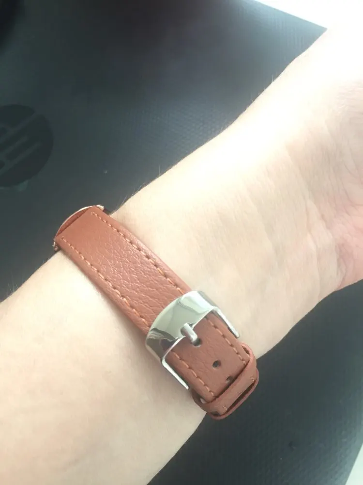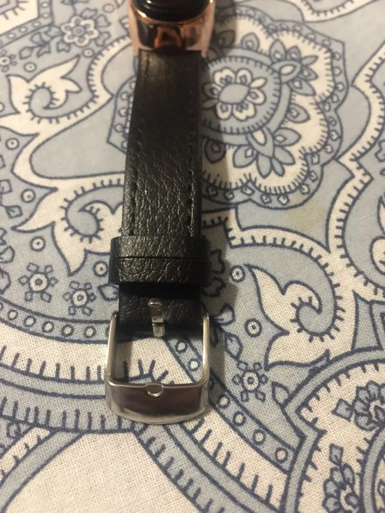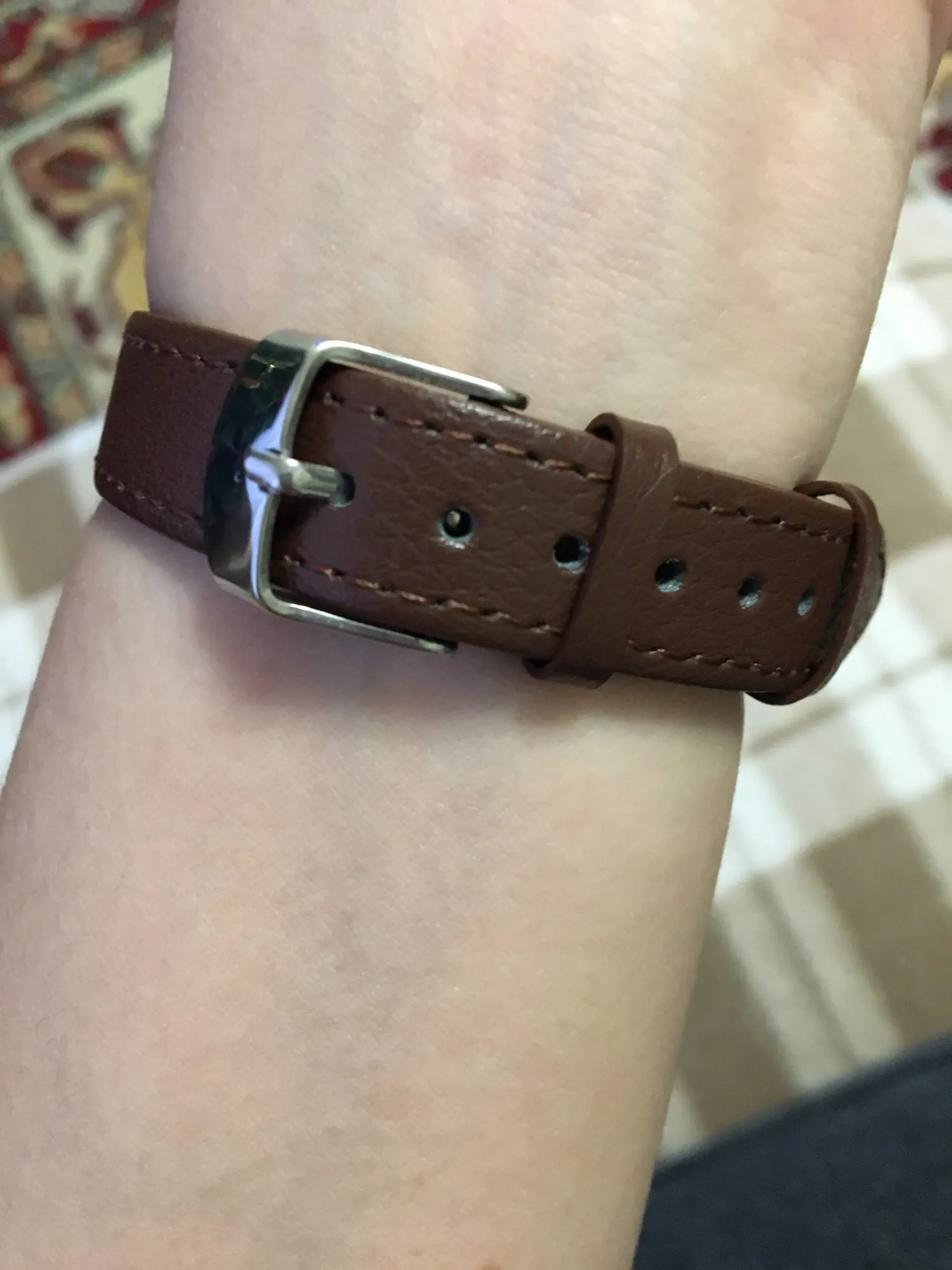 Обратите внимание при покупке: цвет металла держателя розовое золота, а цвет металлической застёжки - серебро. В остальном все отлично: капсула часов сидит плотно, нитки не торчат, фурнитура за месяц не облезла.