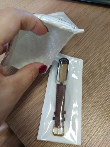 Доставка за 3недели. Ремешок конечно не кожа, но хорошего качества. Легко вставляется. Сделан аккуратно. по мне так слегка узковат по ширине, с учетом самой капсулы. Покупала за 311руб. Рекомендую. Модель ми бэнд 5.